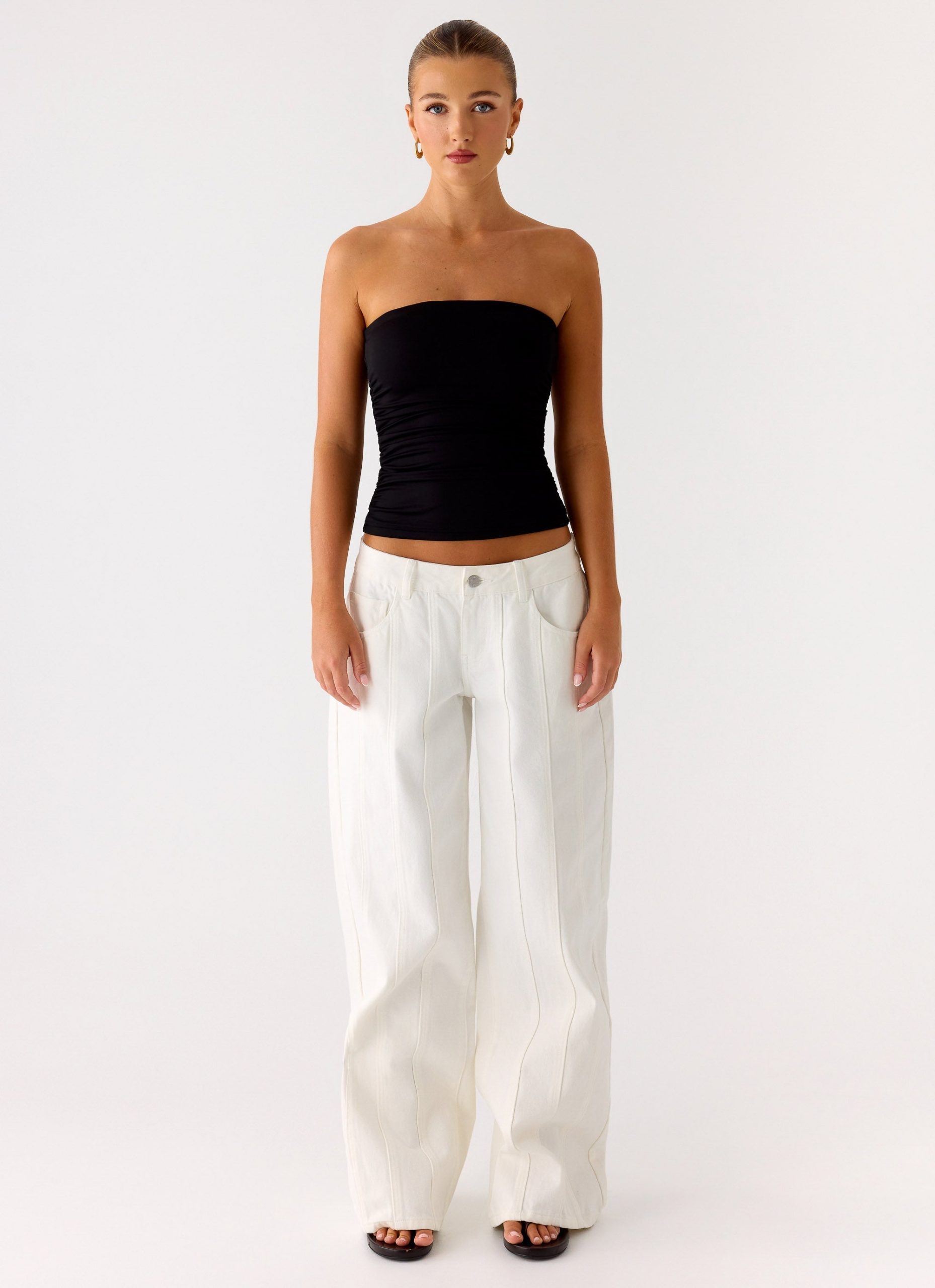 The Adrienna Strapless Top is made for confident. sun-soaked evenings and effortless cocktail moments. Its strapless. body-hugging design with ruched sides sculpts a flattering silhouette. while silicone grips ensure a secure fit. Fully lined and crafted in stretch jersey. it pairs perfectly with everything from flowing skirts to tailored trousers.