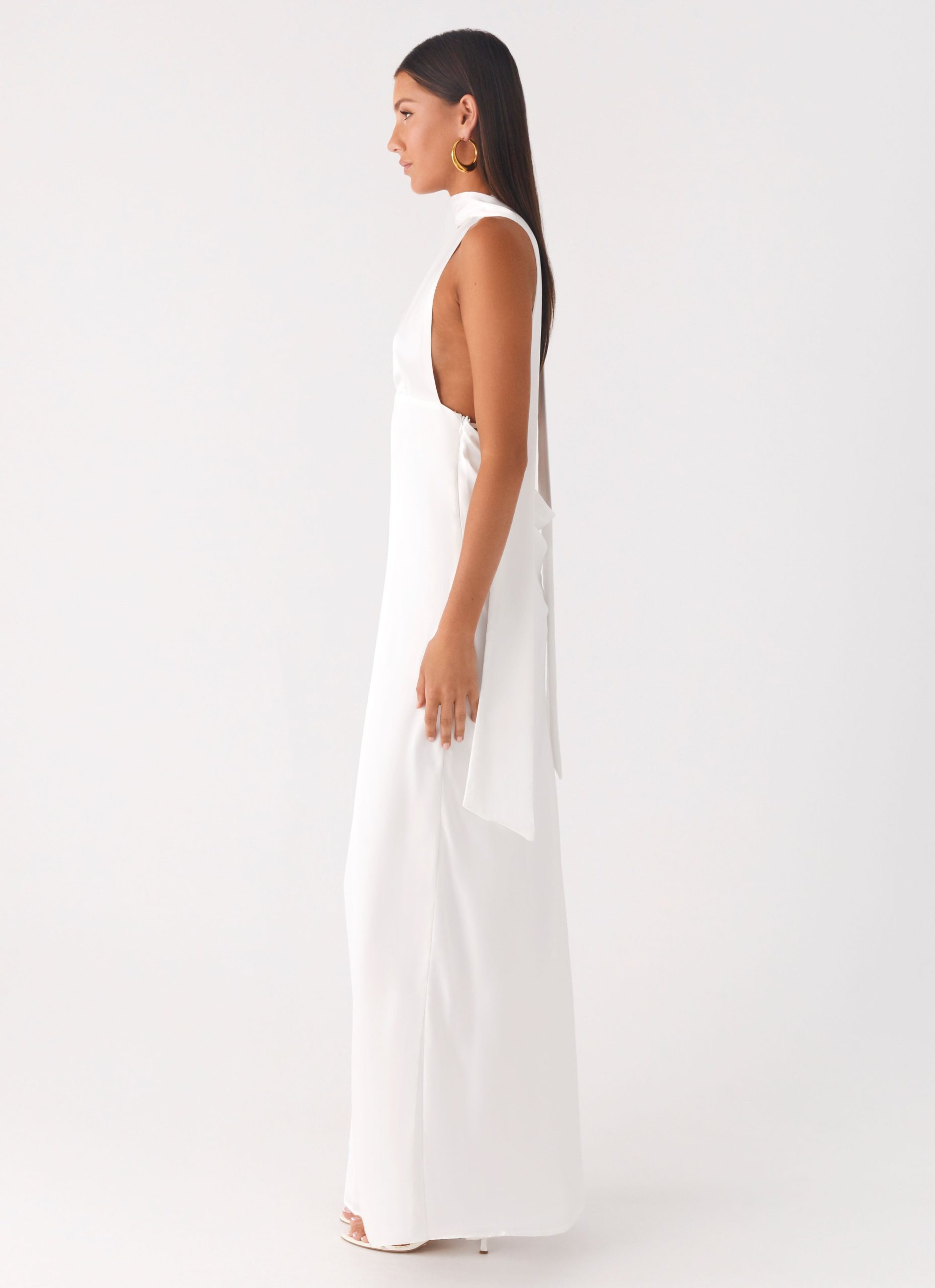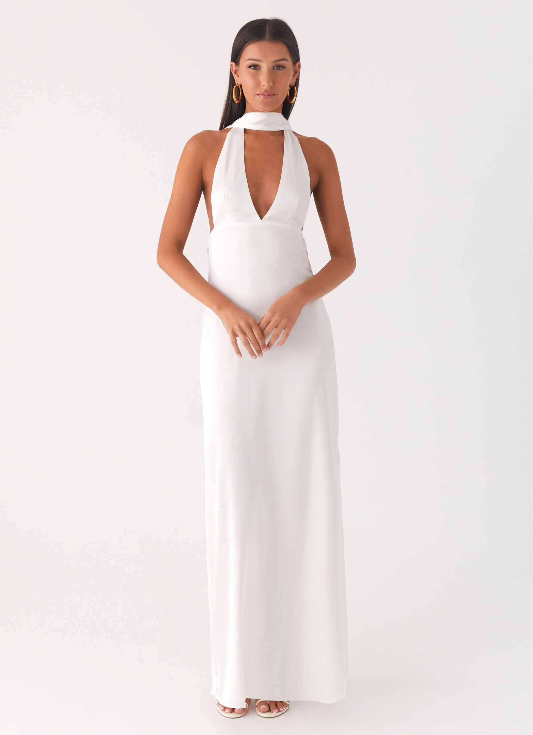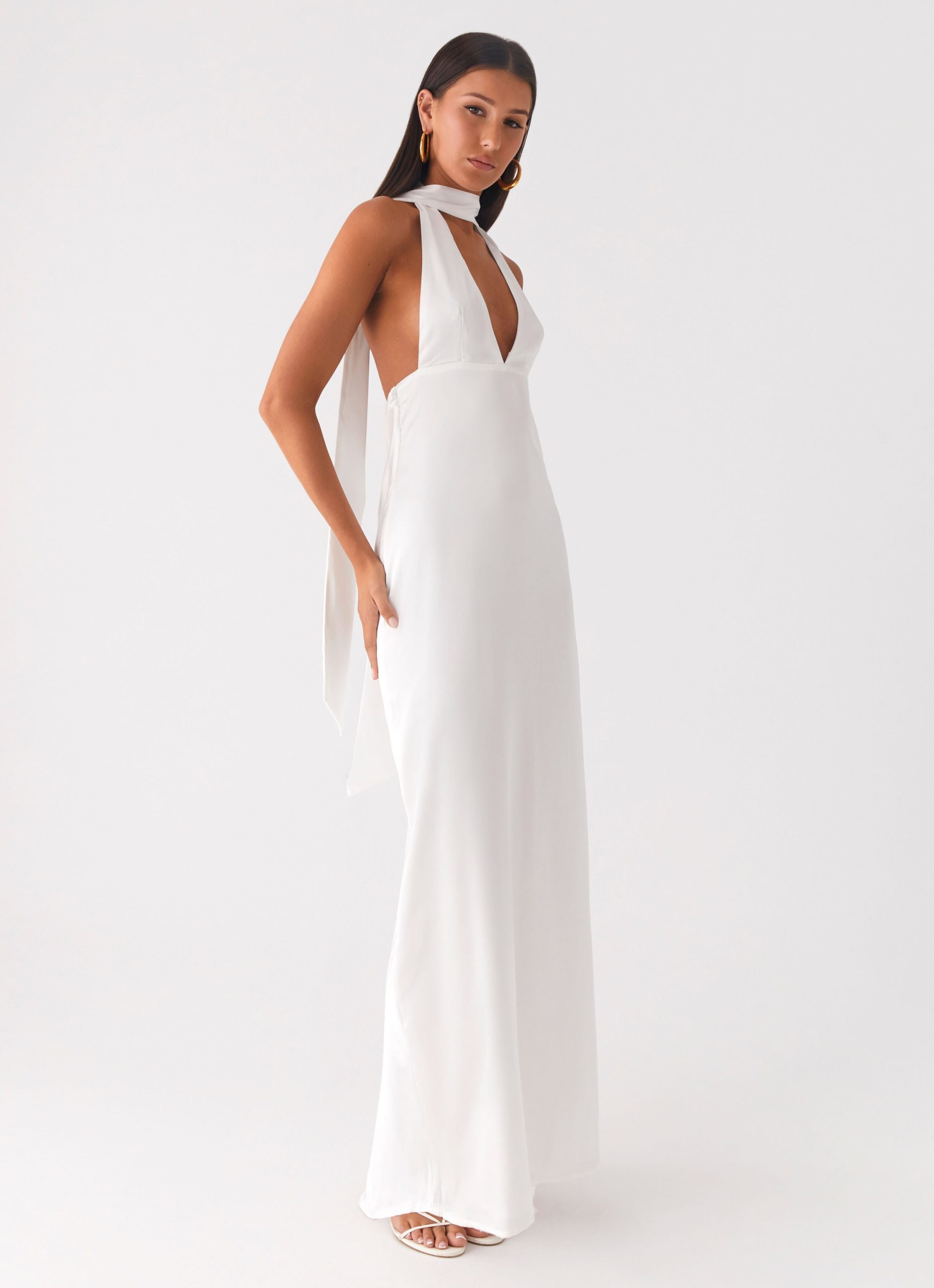 Be the first to review “Alicia Satin Halter Maxi Dress – White”