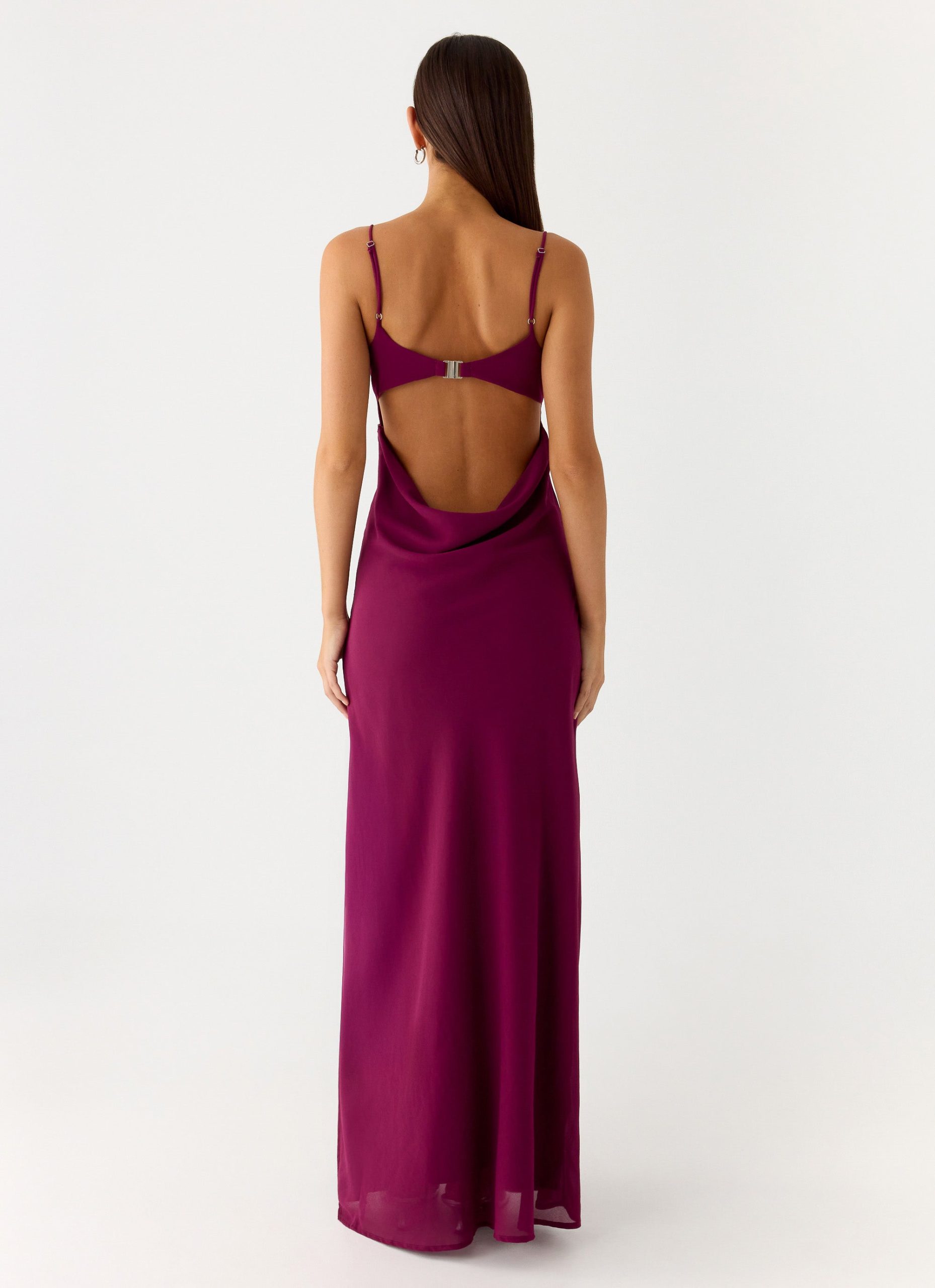 The Alouette Maxi Dress brings effortless drama with a rounded neckline. low cowl back. and front side split. Finished with thin adjustable straps and a metal clasp detail. it’s fully lined for a smooth fit.