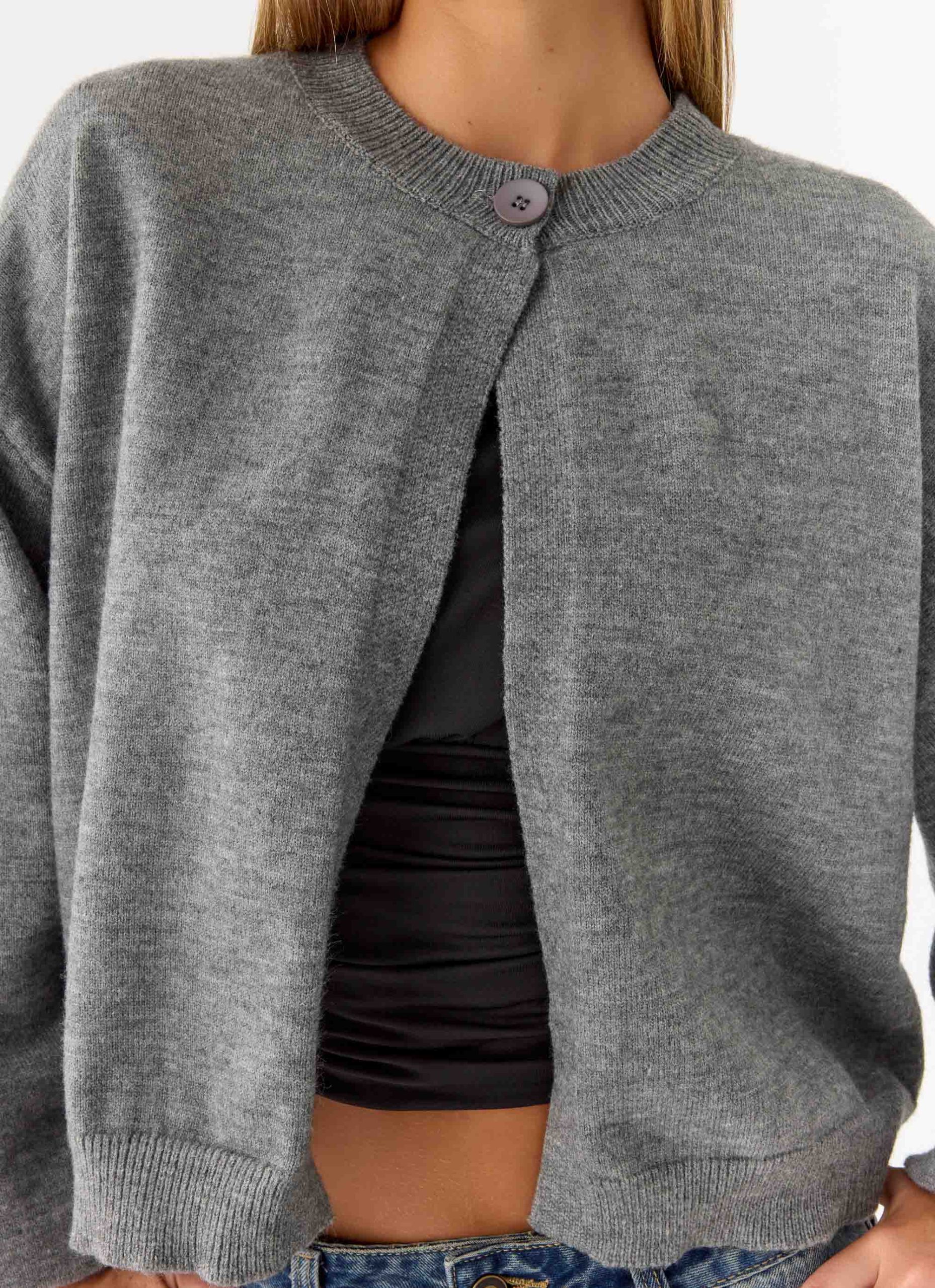 The Annie One Button Cardigan is the perfect mix of cozy and chic. Featuring a high scoop neckline and an oversized fit. it offers a relaxed yet stylish look.