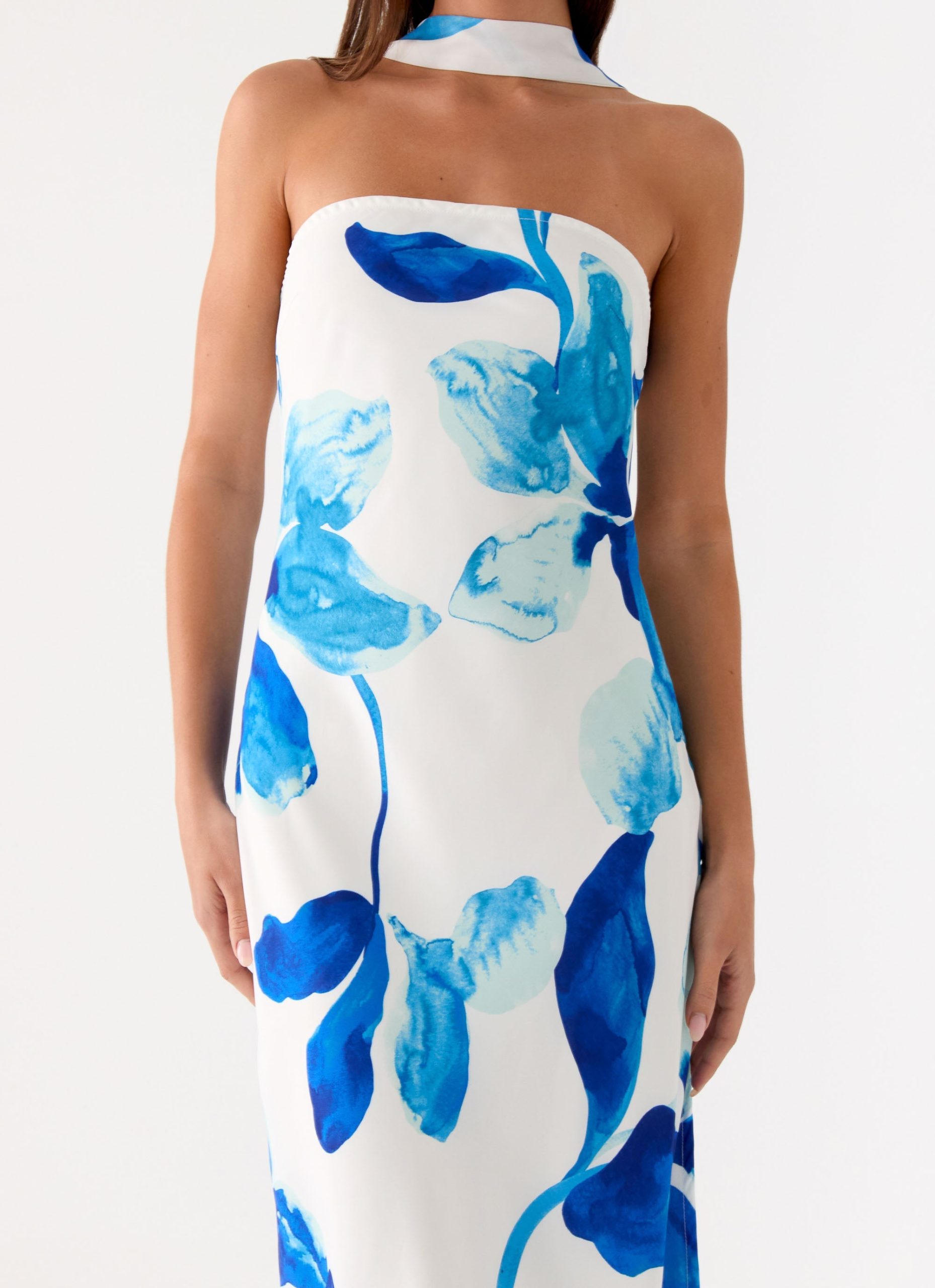 The Ashelle Chiffon Maxi Dress is a stunning strapless maxi with a mini-length inner lining. designed to turn heads. Featuring elasticated silicone taping for a secure fit. a high slit for flirty movement. and a side invisible zipper. this fully lined dress showcases an exclusive print that varies with each garment.