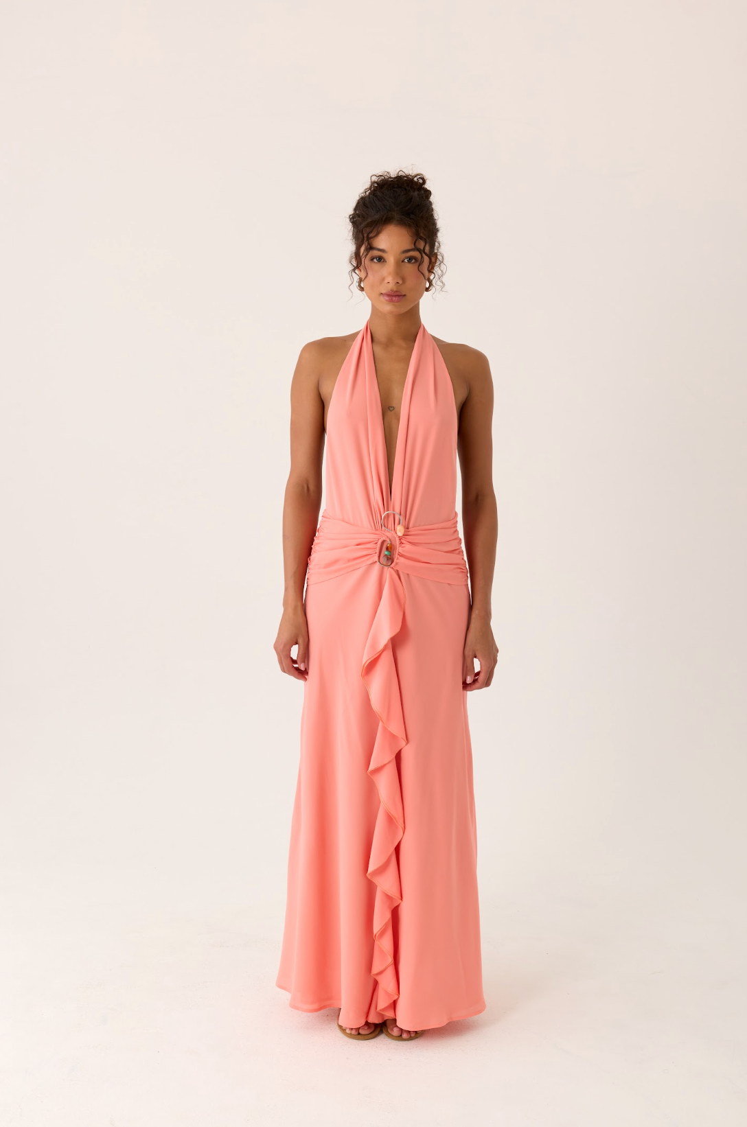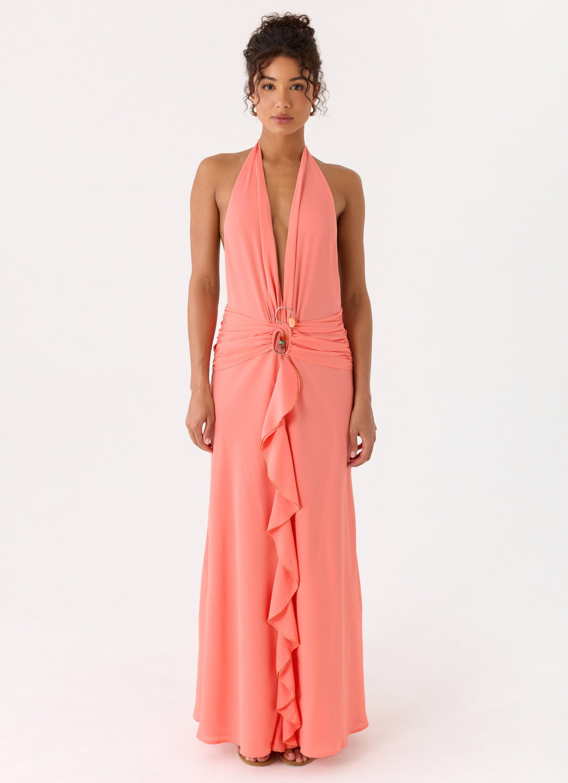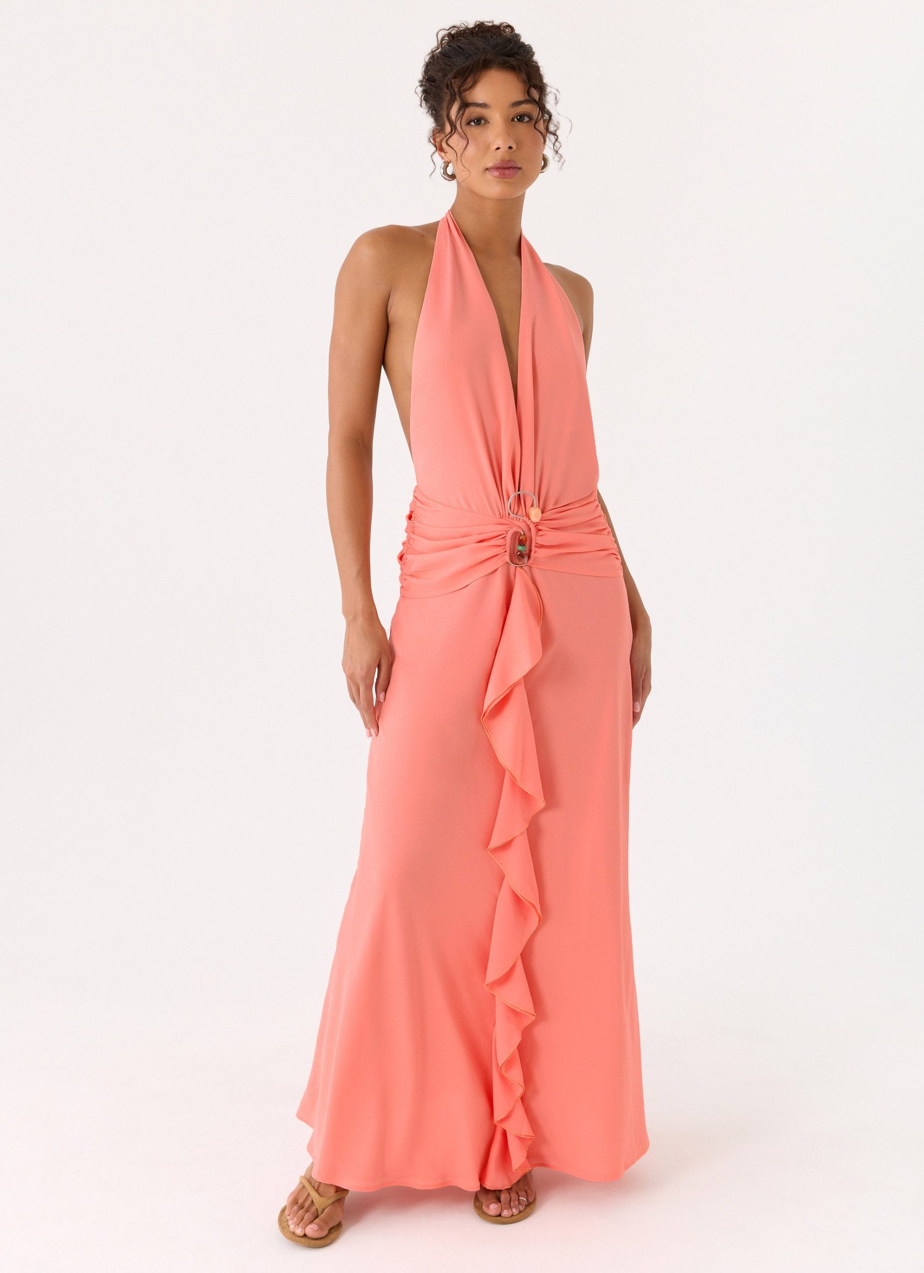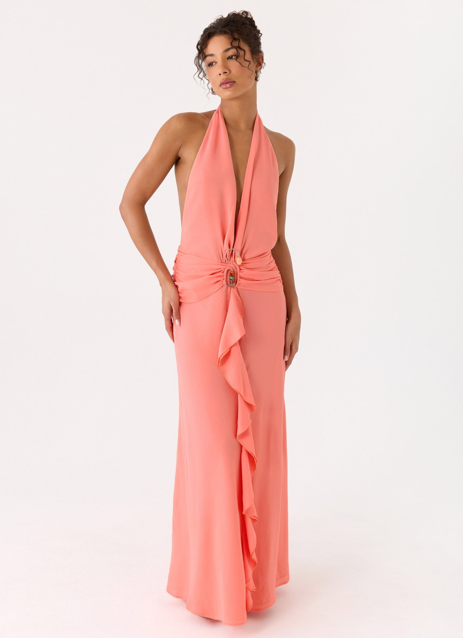 Attina Halter Maxi Dress – Coral