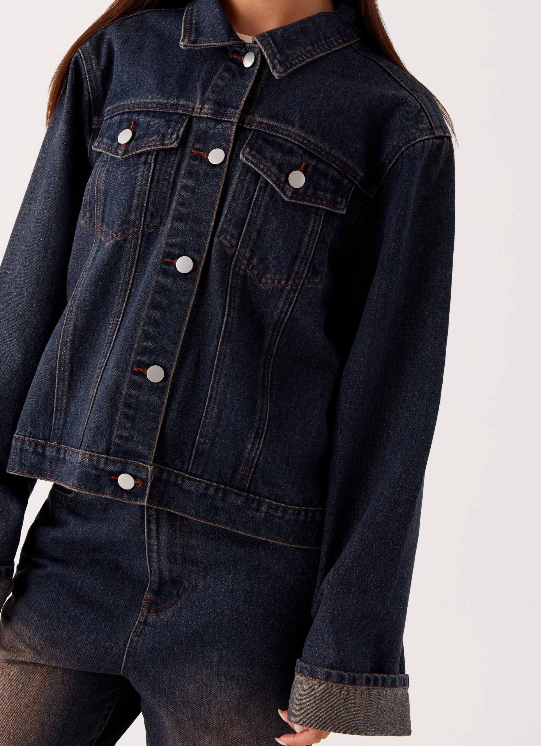 The Back Again Oversized Denim Jacket is the ultimate layering piece for your after-dark look. With its front metal buttons and raw. unlined finish. it brings a relaxed. bold edge to your outfit.
