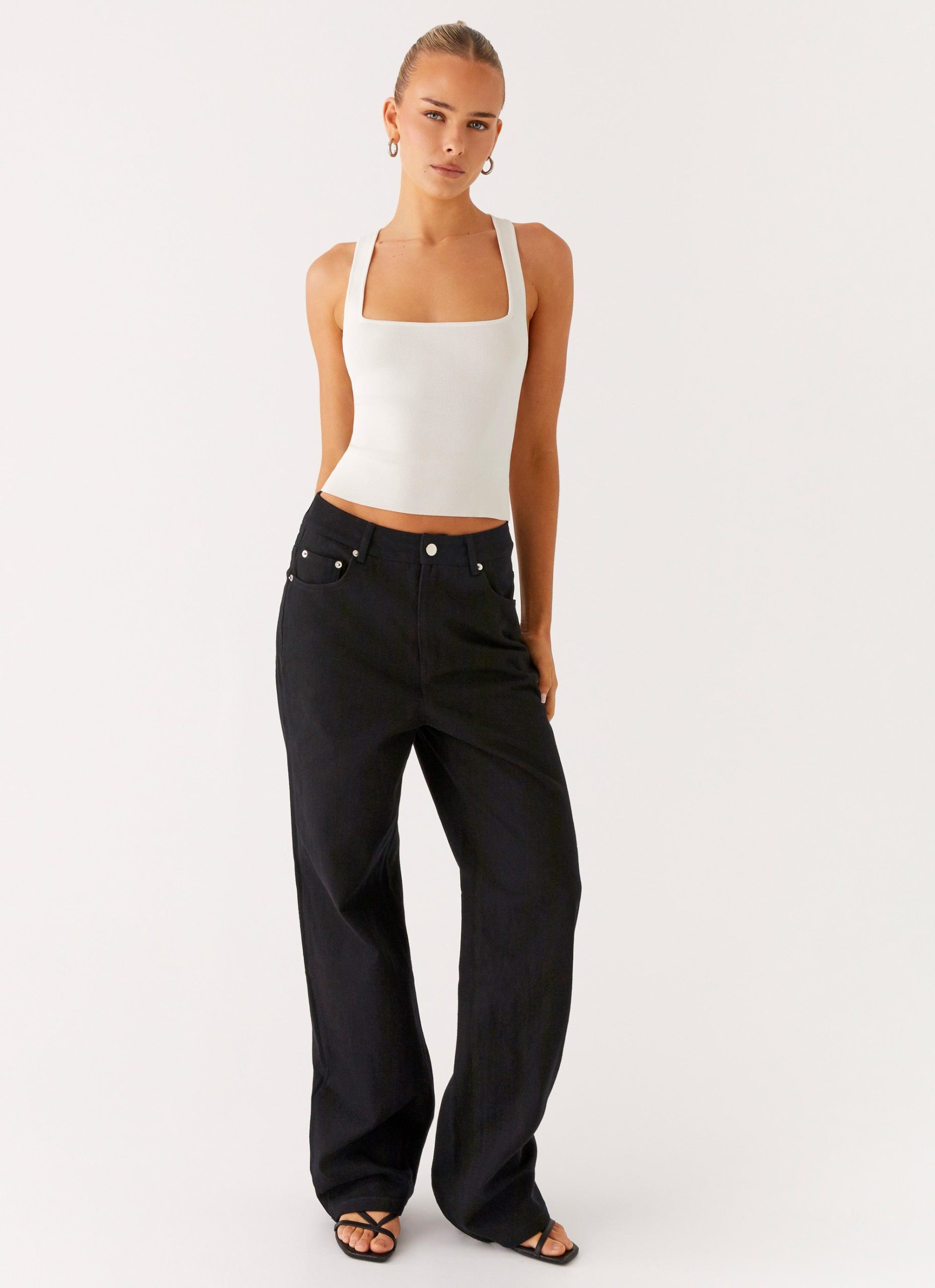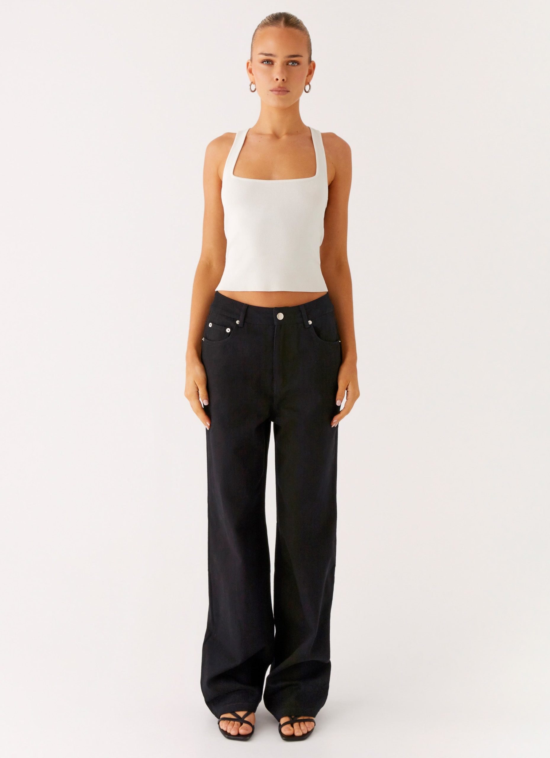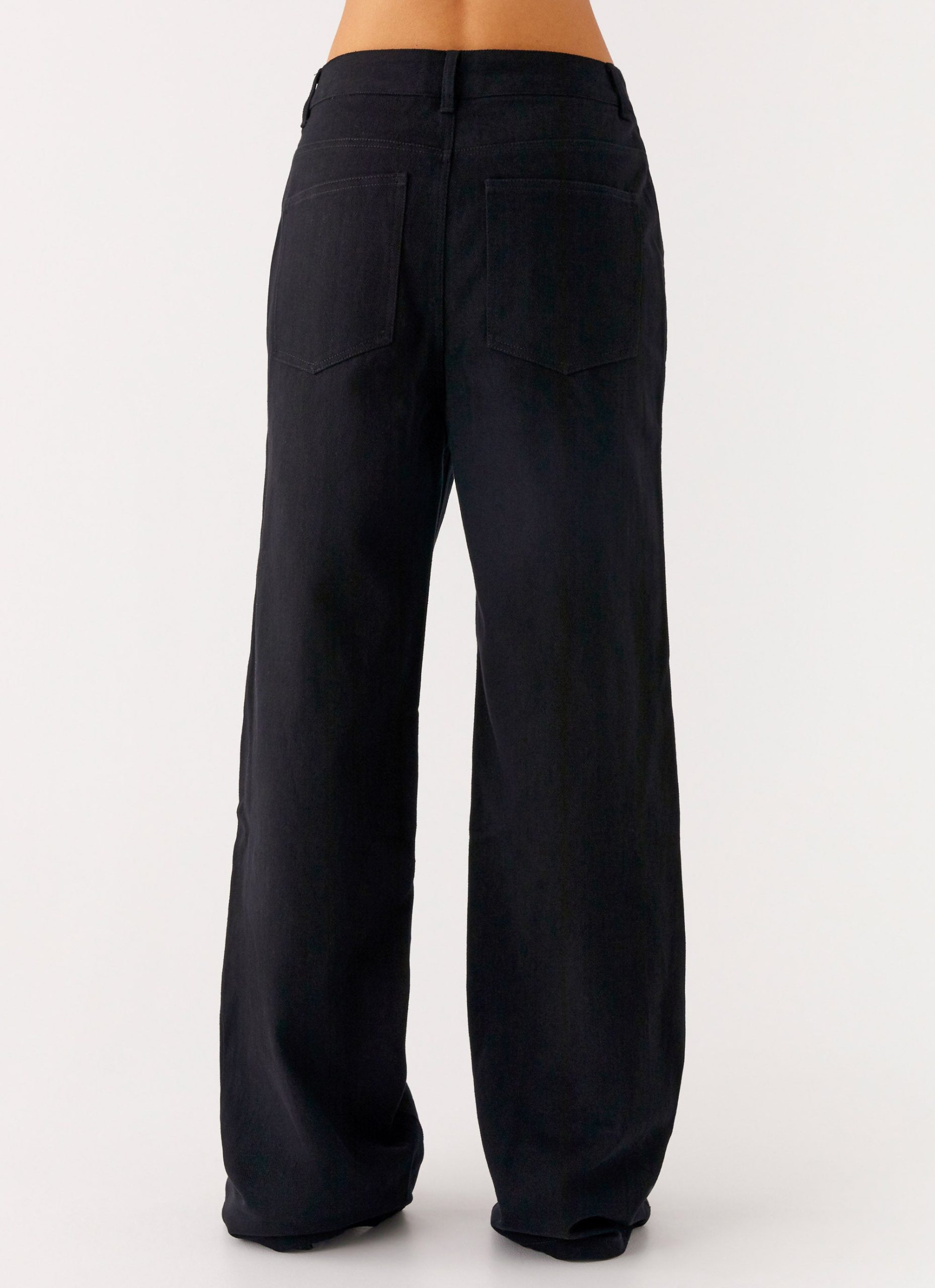 The Back Again Straight Leg Denim Jeans bring laid-back cool to your after-dark edit. Featuring a low rise with side slanted pockets and back patch pockets. these unlined jeans offer a baggy fit finished with front metal button. invisible zipper. and belt loops for versatile styling.