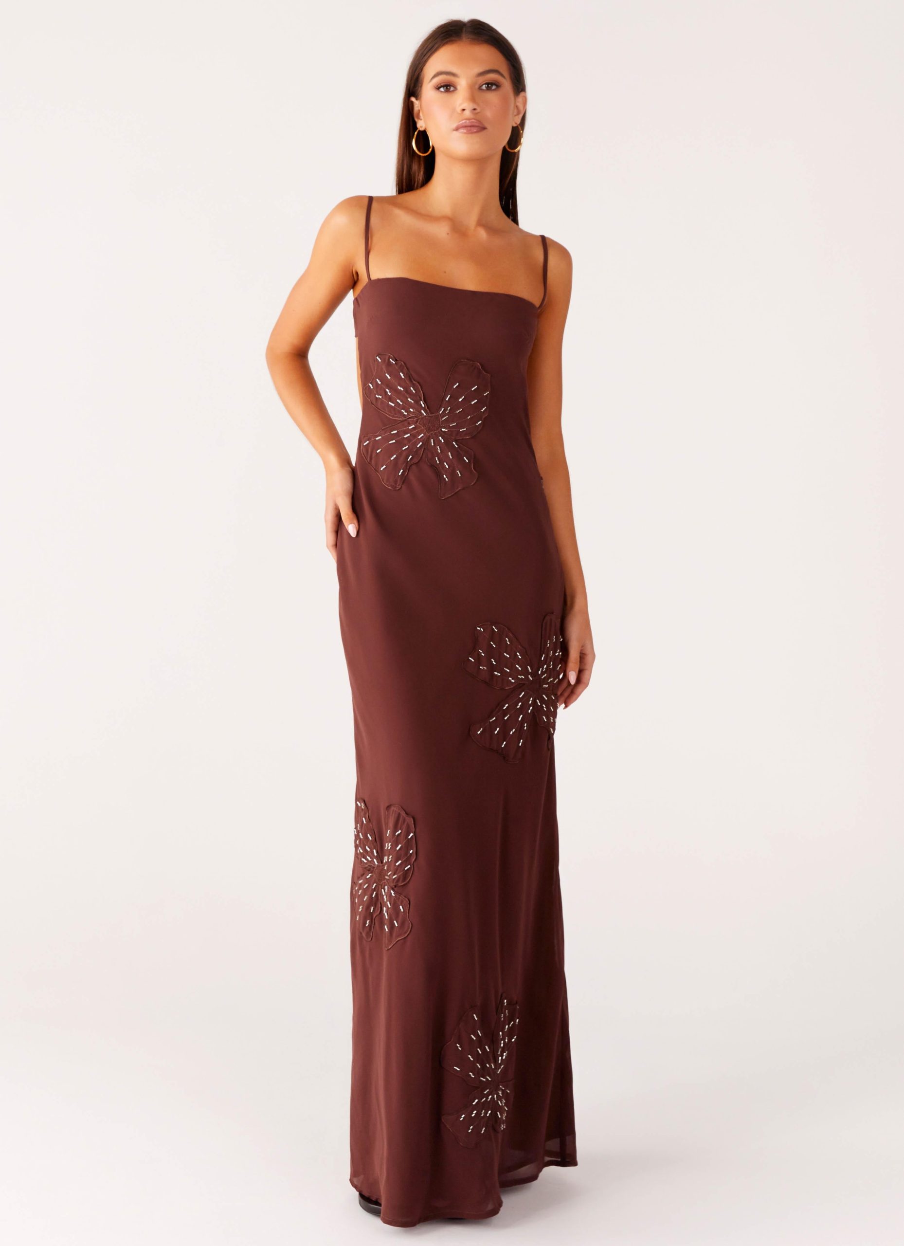 Bayla Beaded Flower Maxi Dress – Chocolate