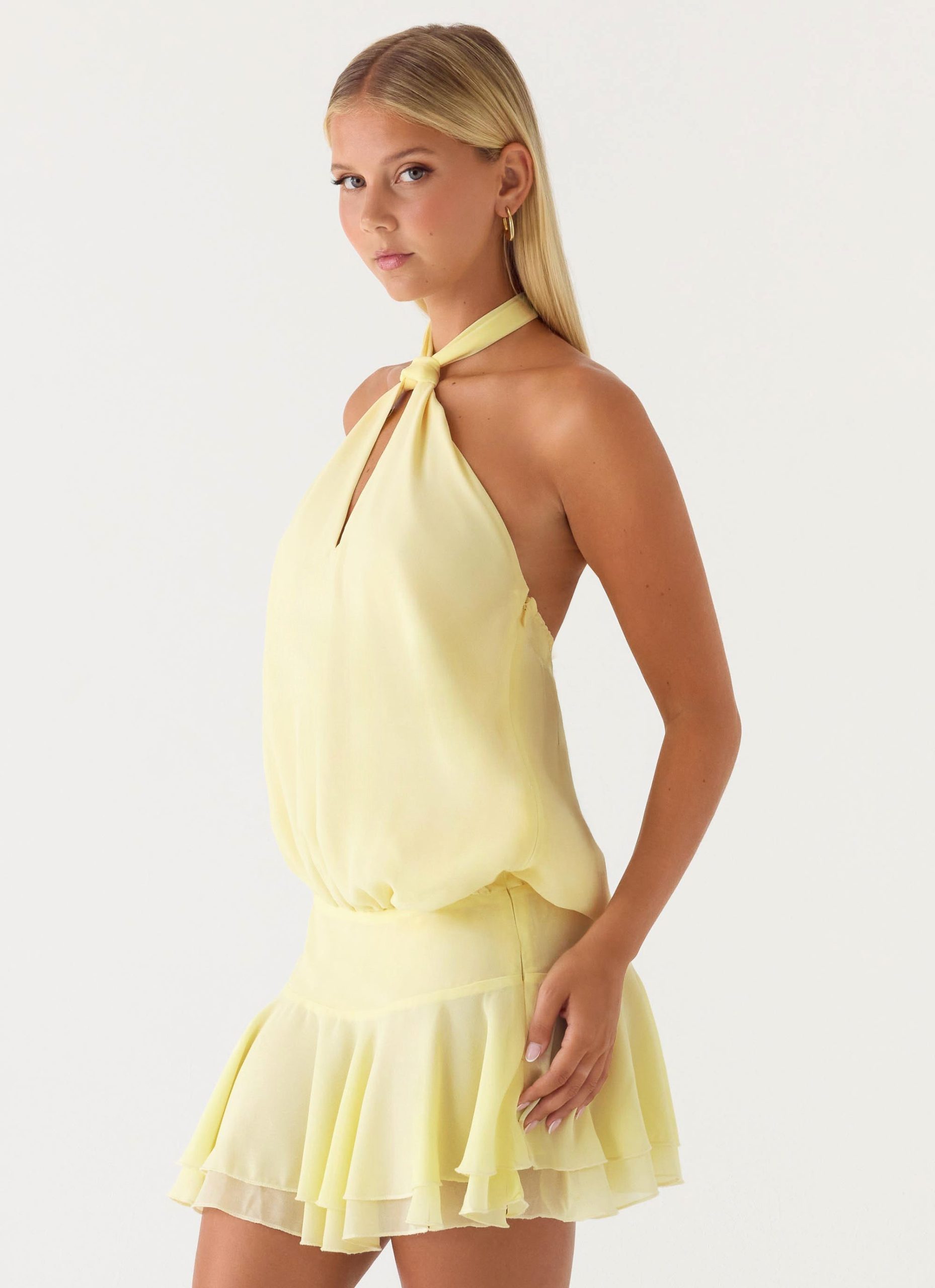 The Beginning Mini Dress is made for sunlit days and breezy evening escapes. Featuring a front keyhole with tie back and a low-back design. its mini-length silhouette flatters the figure while offering playful movement. Crafted in soft chiffon. it pairs effortlessly with sandals or heels for day-to-night styling.