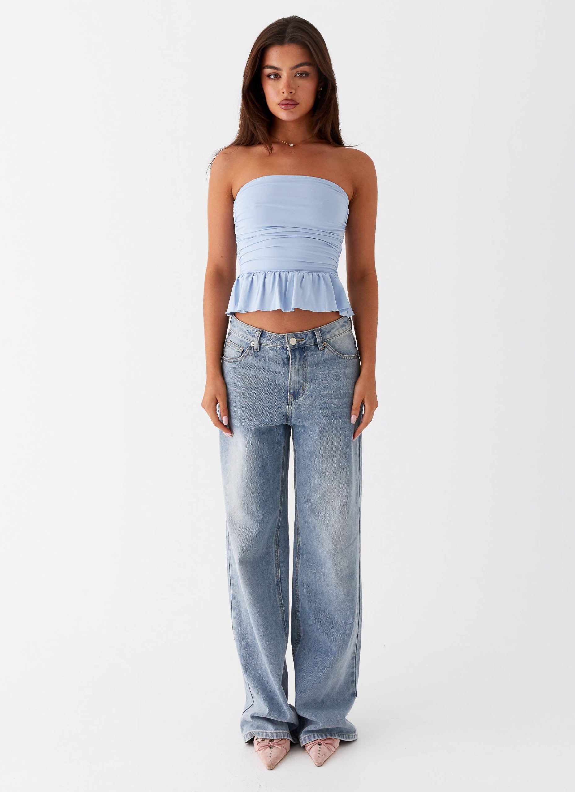 Radiate charm in the Bella Lou Tube Top. Featuring a chic strapless neckline. delicate frill hem detail. and a gathered bodice for a flattering fit. it’s designed for those who love effortless elegance and feminine allure.