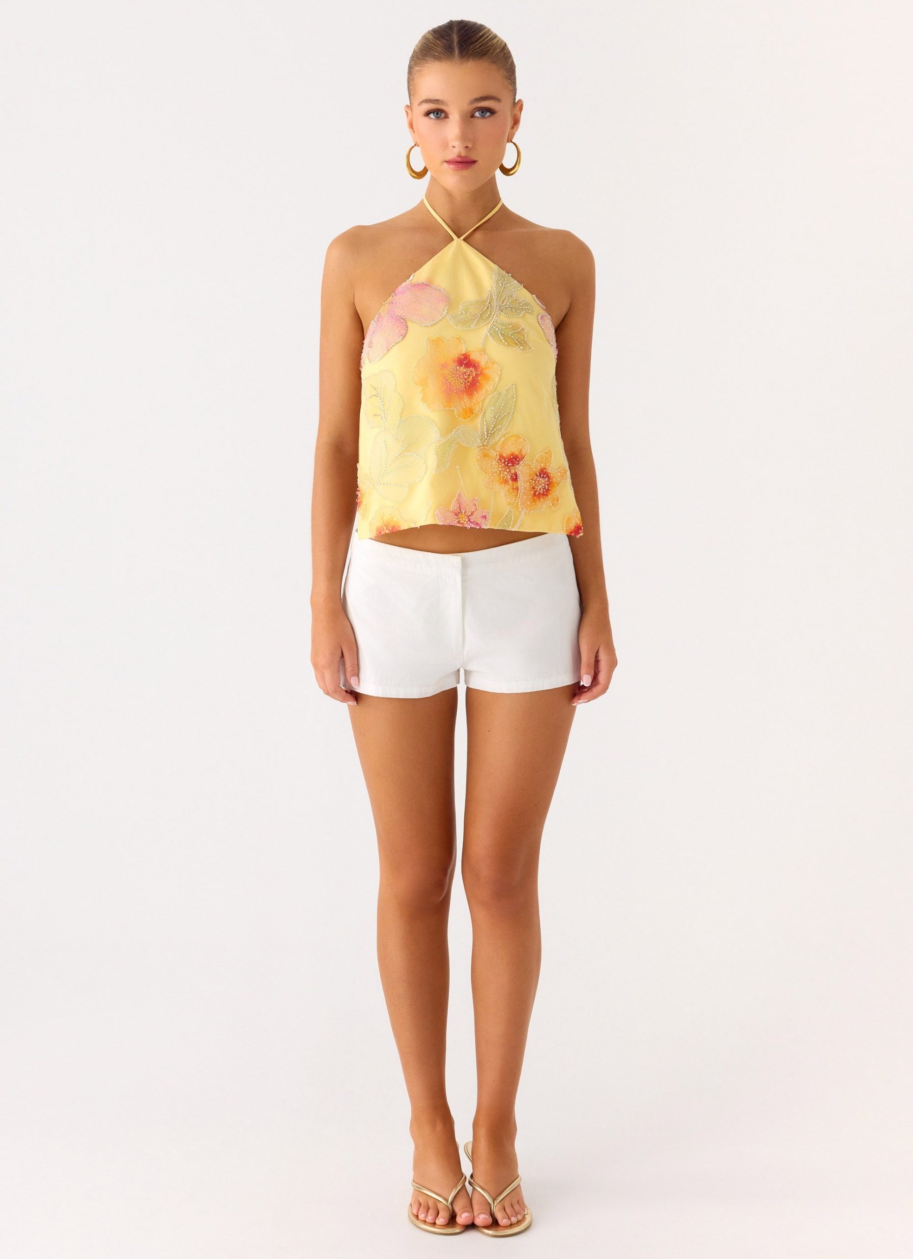 The Bliss Beaded Halter Top is a sparkling and stylish piece perfect for festival looks or evening events. Featuring a halter neck and adjustable back strap. it offers a secure fit while showcasing intricate beaded detailing.