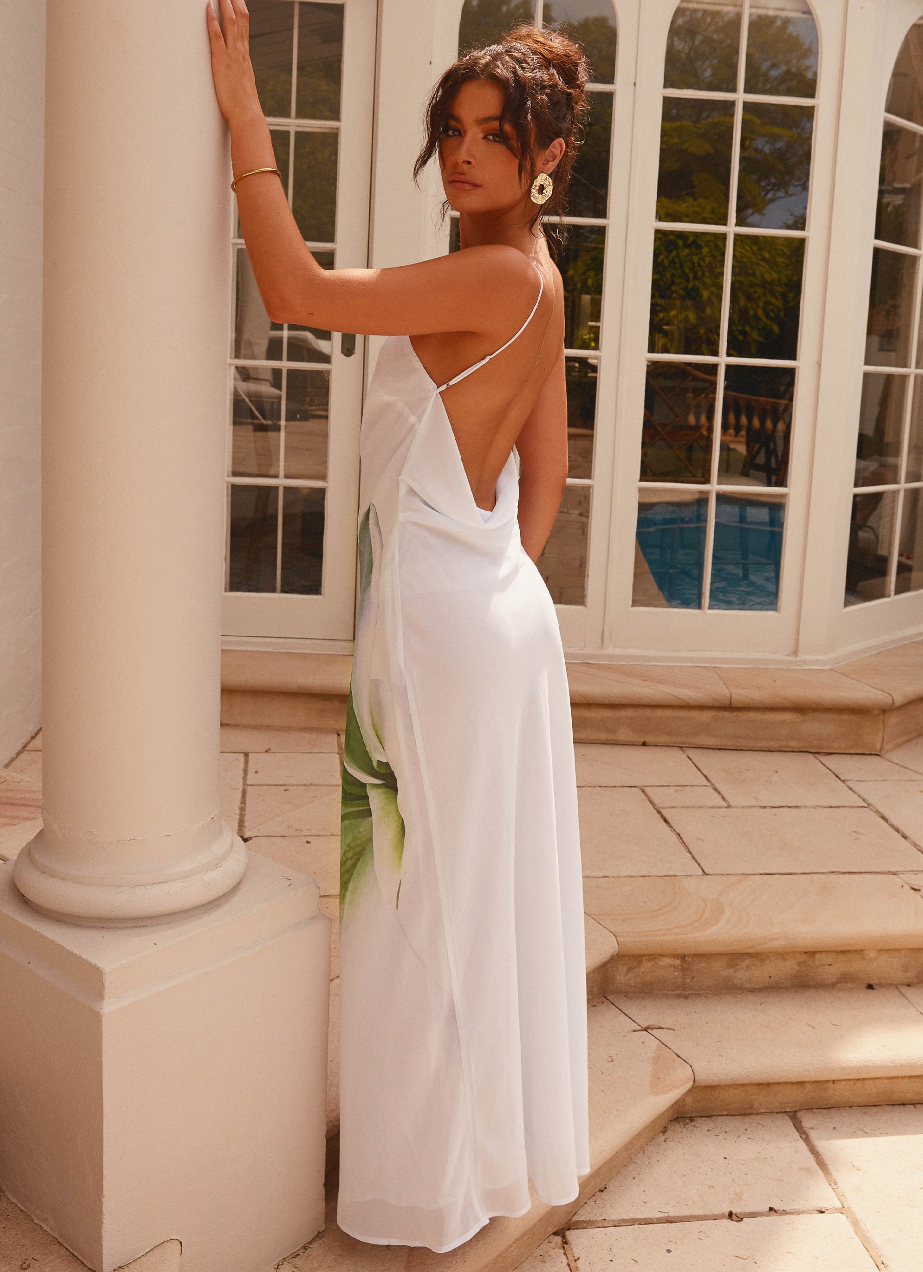 The Blossom Hearts Maxi Dress – a PM best selling design. Featuring a bias cut. halter neck. and low back design. This dress is perfectly paired with kitten heels and a saddle bag for a look that will turn heads. Ideal for embracing golden skies. balmy nights. and nightclub silhouettes.