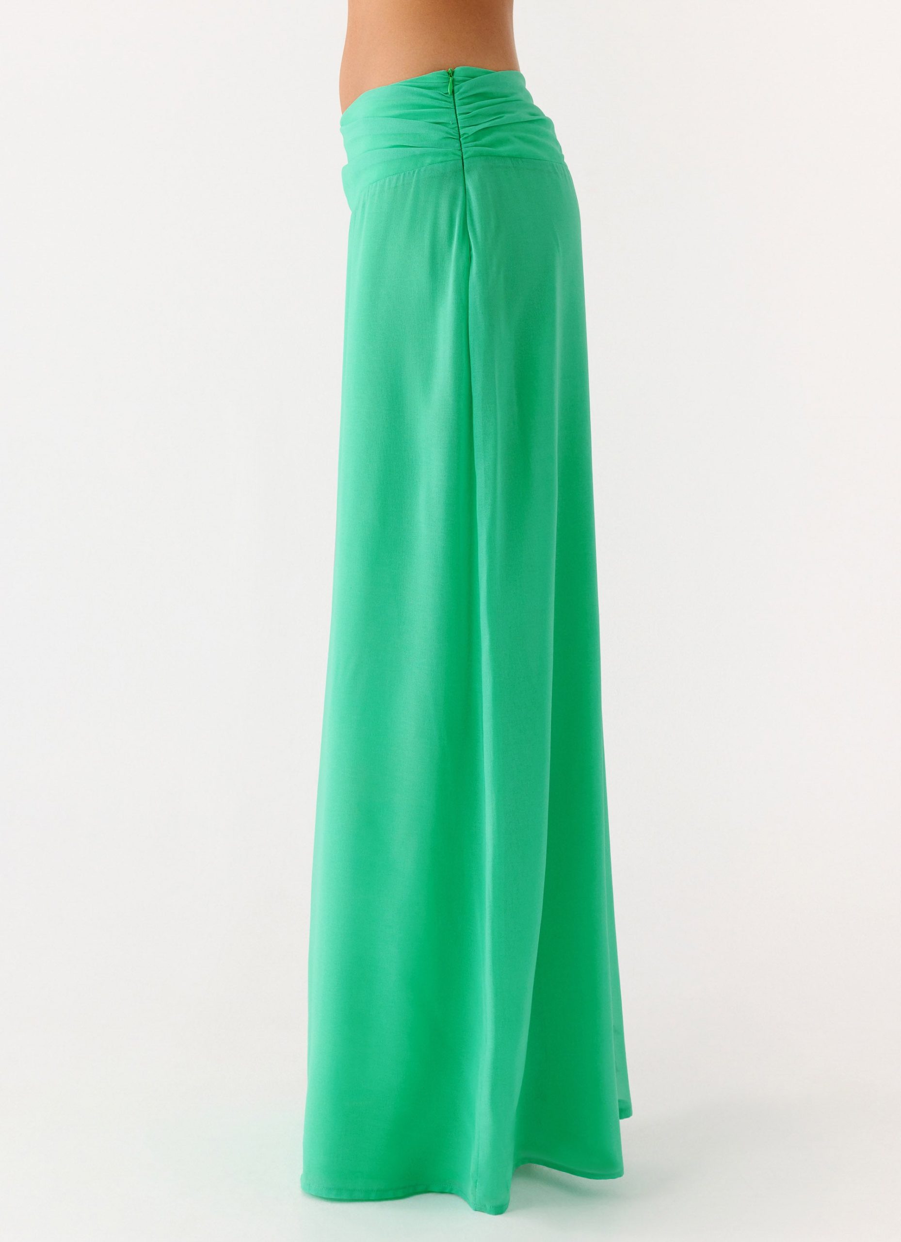 The Blushing Bloom Maxi Skirt is a statement piece with a low-rise fit and ruched waistband. featuring an exclusive print and fully lined design for effortless wear.