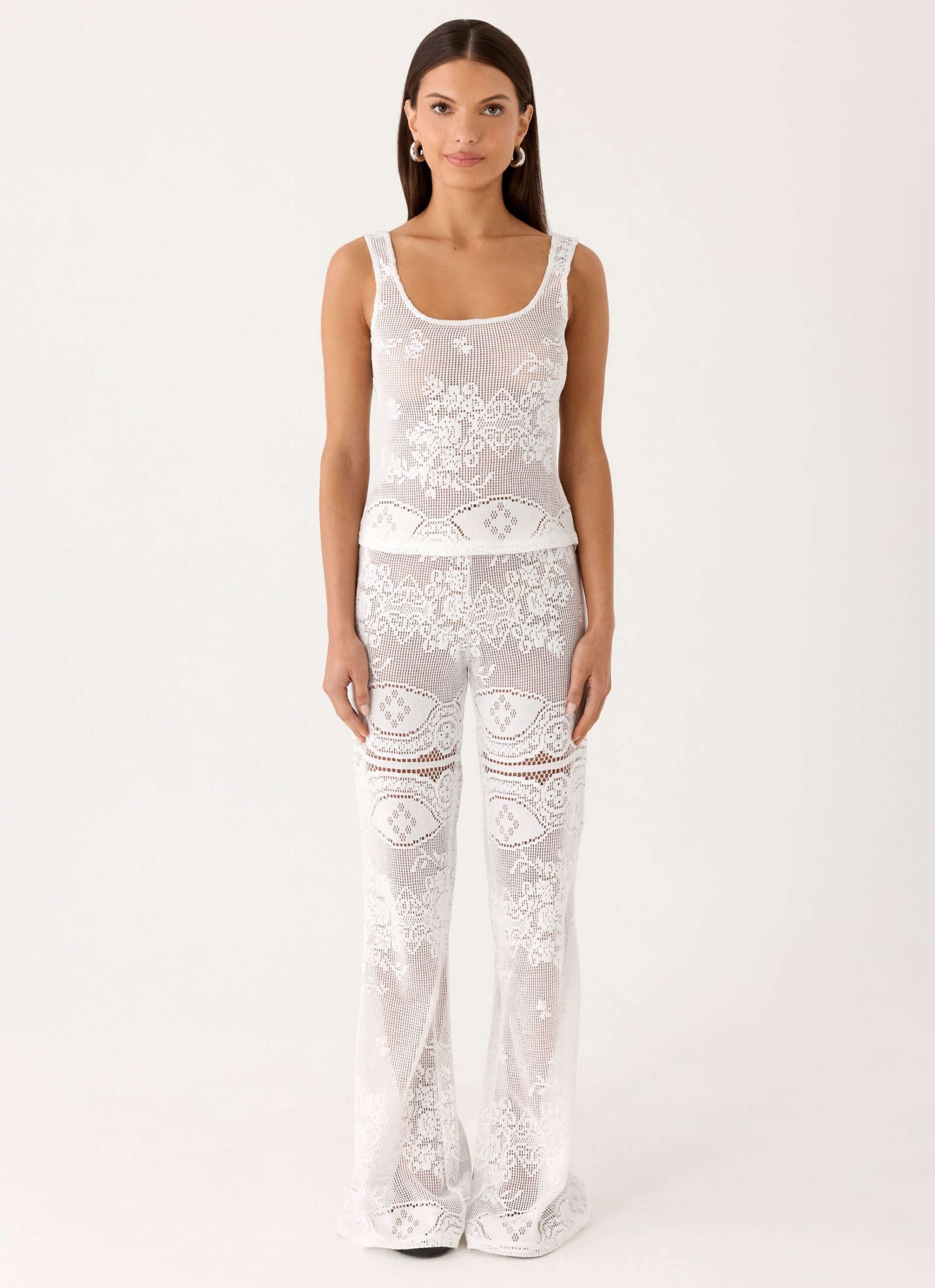 The Bosten Low Rise Pants are made for sun-soaked days that transition effortlessly into golden hour nights. Featuring a low-rise fit. fitted flare silhouette. and delicate lace fabric. they sculpt a flattering shape while offering effortless. editorial summer style. Unlined for lightweight ease. these pants move with you from day to night.