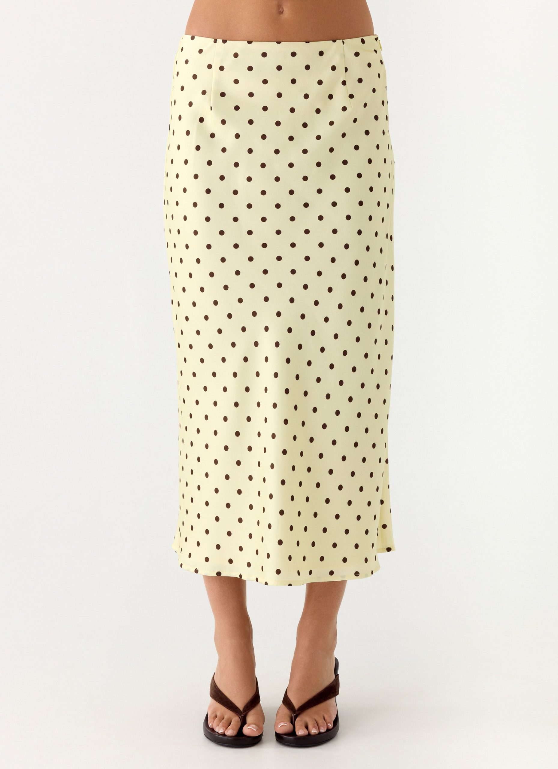 The Breanne Midi Skirt is made for nights that need a little extra and golden-hour moods that drift into the city glow. Featuring a low-rise fit and a bias-cut silhouette. it drapes effortlessly with a buttery. satin sheen. Crafted in an exclusive polka dot print and fully lined for seamless movement. this midi is all about timeless allure and sultry. beach-to-bar elegance.