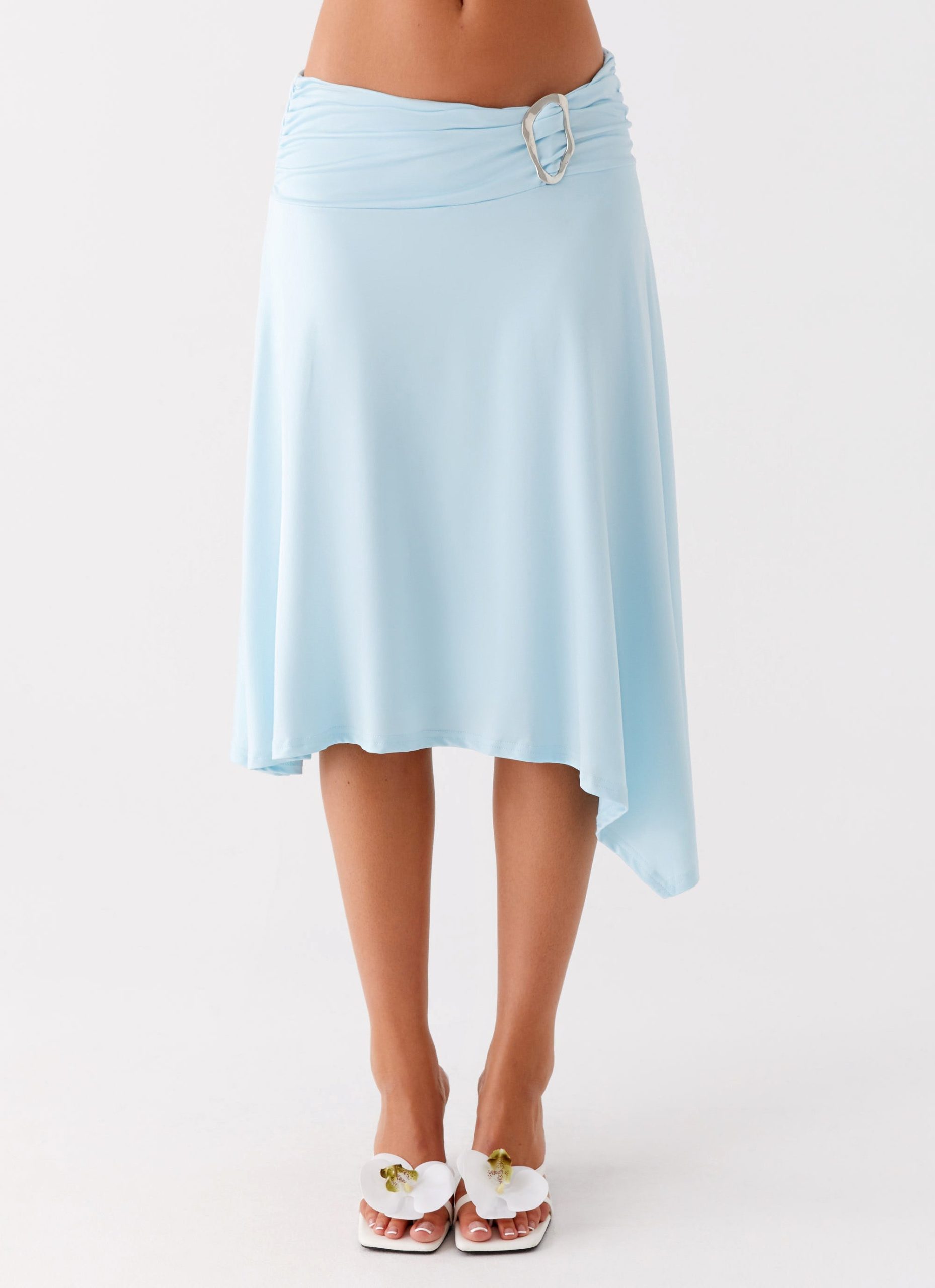 The Brisa Midi Skirt offers effortless style with its flattering midi length and low waistline. Crafted from soft stretch jersey material. it features an asymmetrical hemline and ruched waistband for added texture and movement. making it a versatile addition to any wardrobe.