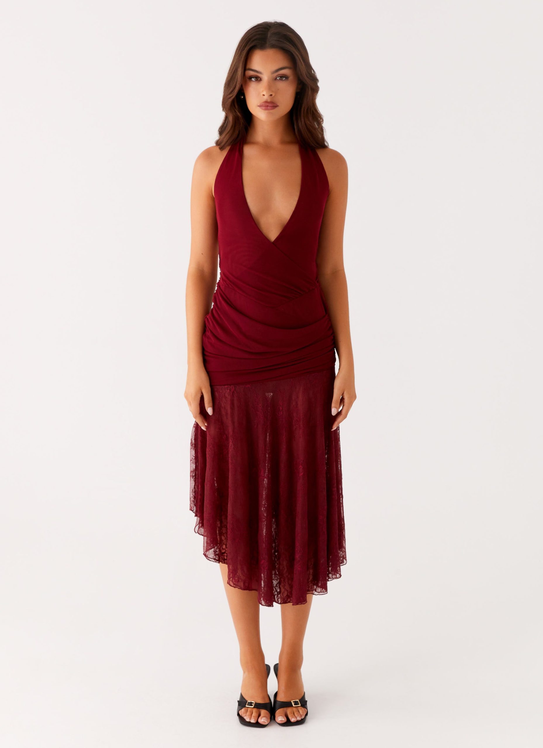 Burnout Midi Dress – Maroon
