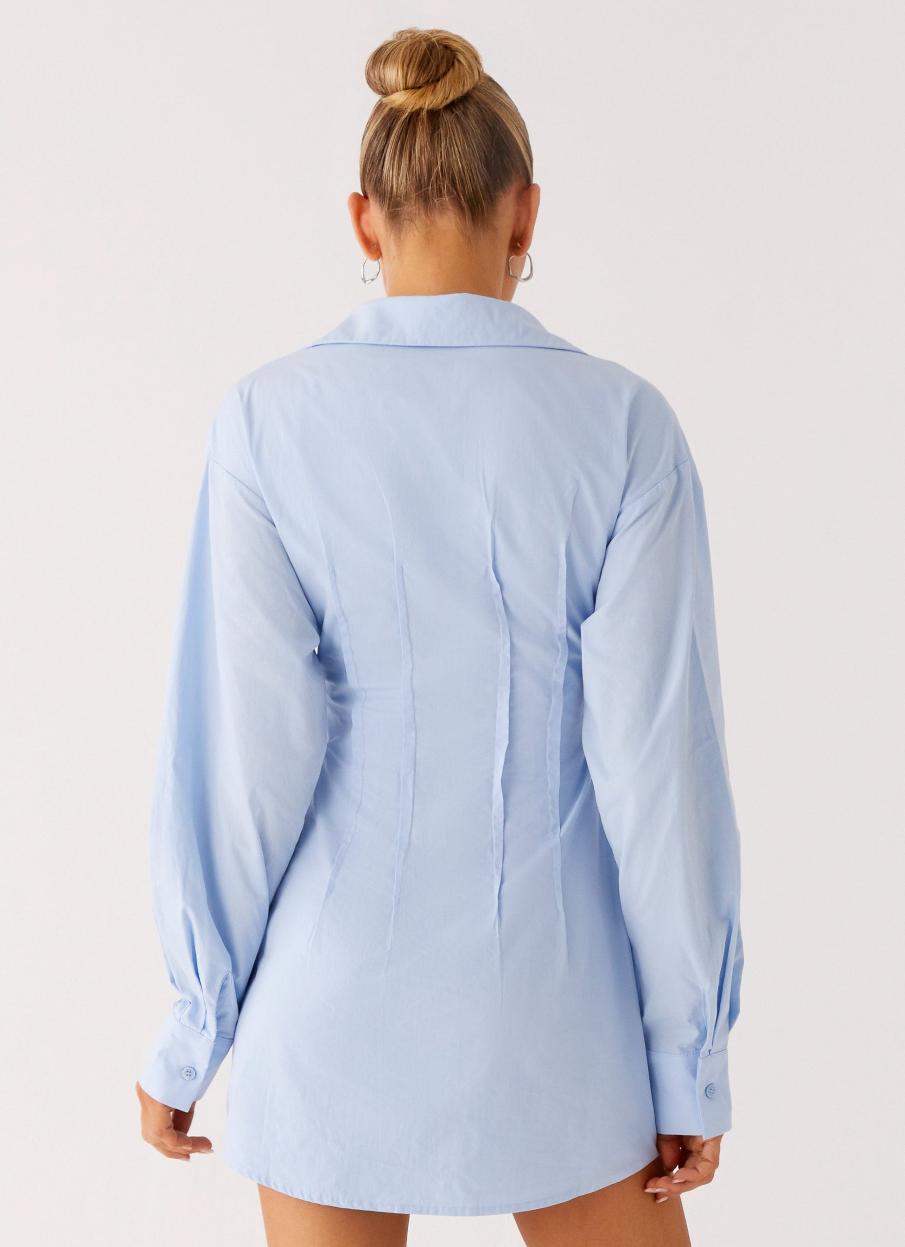 The Clancy Mini Shirt Dress is tailored to turn heads. Featuring a single collared neckline with a ruched and wired underbust. this fully lined mini is detailed with a pleated bodice. twin button cuffs. and a side invisible zipper—your perfect pick for elevated evenings.