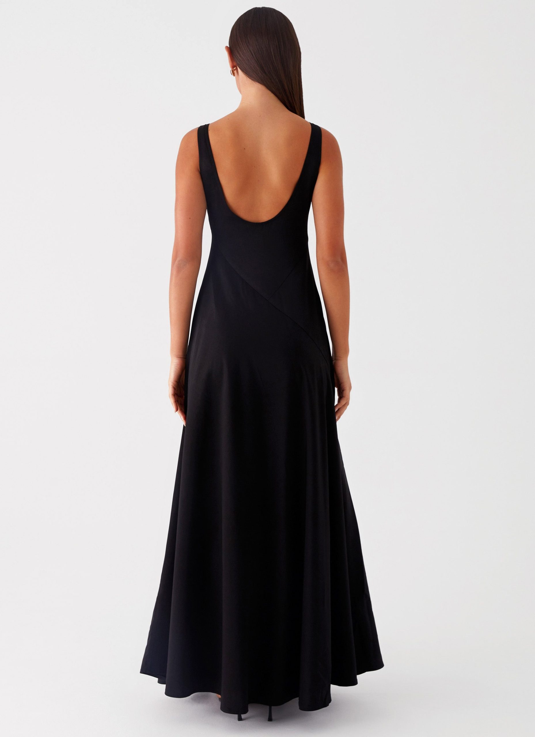 The Cosma Maxi Dress features a rounded neckline and a flattering flare fit that flows elegantly with every step. Fully lined for added comfort and coverage. this dress combines classic style with a graceful silhouette. making it a versatile choice for any occasion.