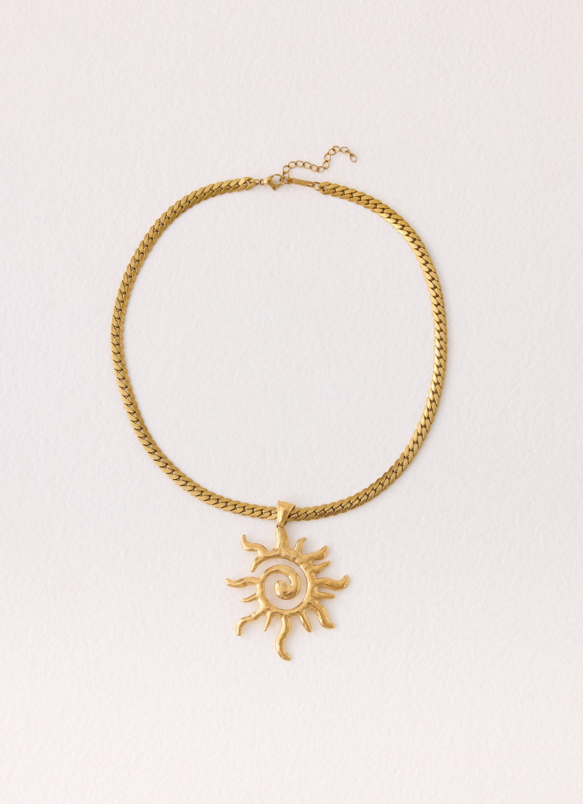 The Dawnline Necklace is made for golden hour glow that lingers into the night. Designed in a radiant sun spiral silhouette. its golden tone catches the light with every movement. adding a luminous finish to any after-dark look. Bold yet refined. it’s a statement made for balmy nights and endless horizons.