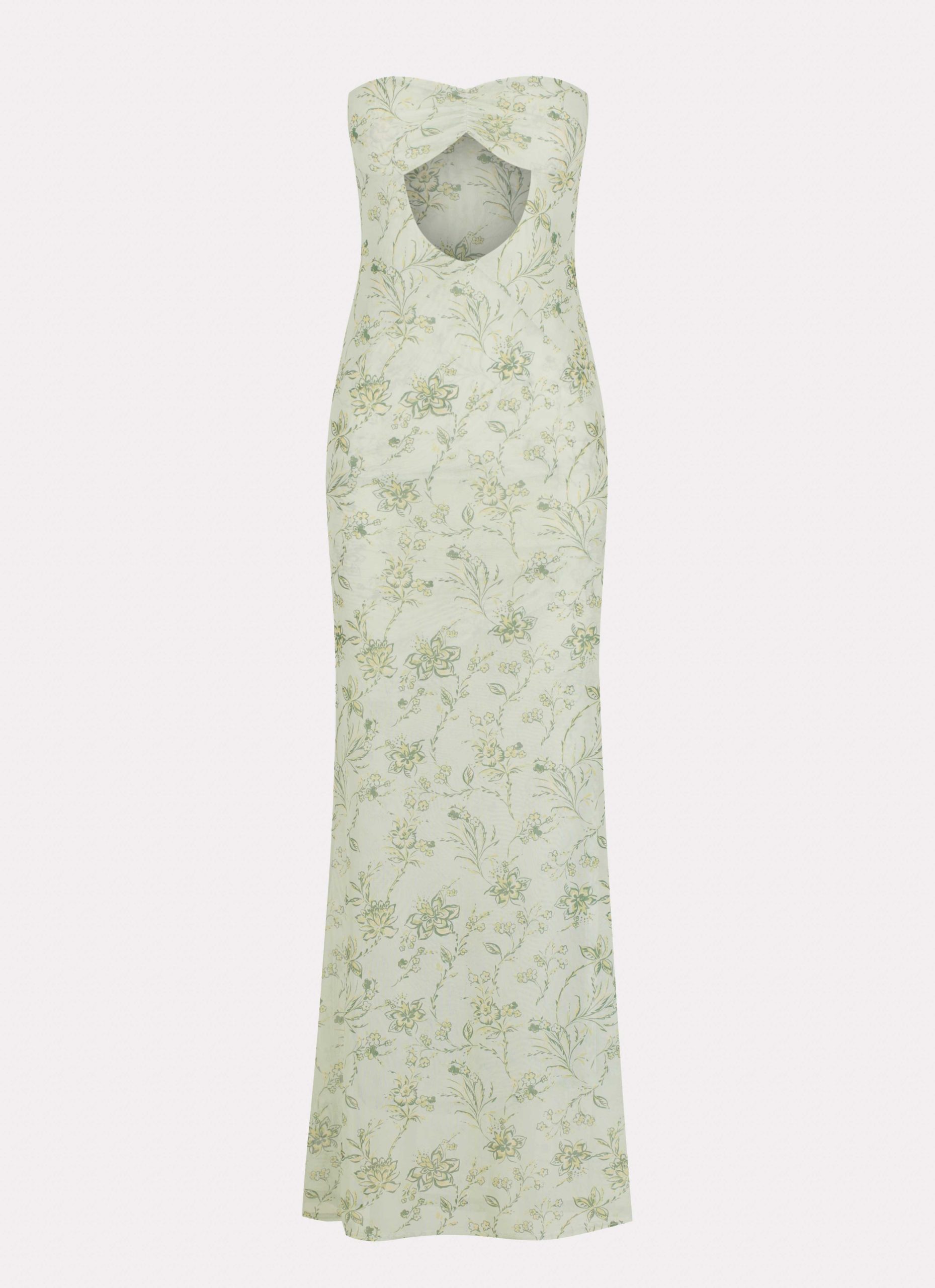 Embrace elegance with the Dearest Maxi Dress. Featuring a strapless neckline. ruched center bust. and captivating front cut-out detailing. this dress effortlessly blends sophistication with a touch of allure.