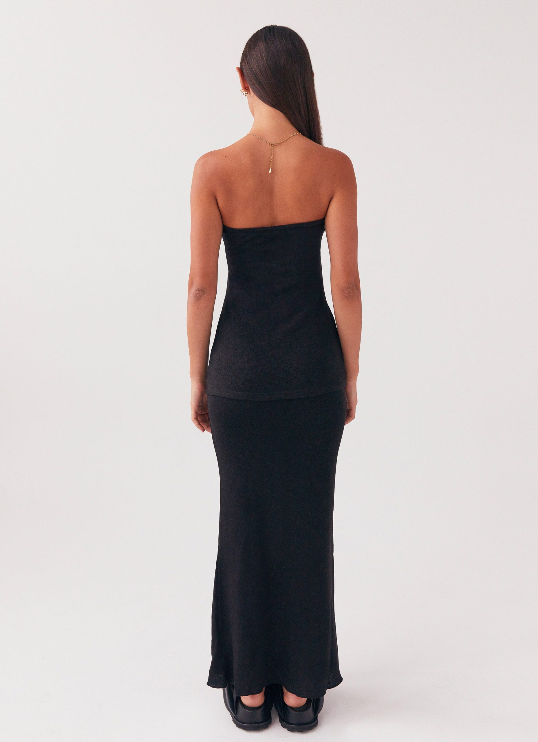 Introducing our Delicate Lady Knit Top. This sheer strapless design pairs effortlessly with our Delicate Lady Knit Maxi Skirt for a coordinated ensemble that exudes elegance under the golden skies. balmy nights. and captivating nightclub silhouettes.