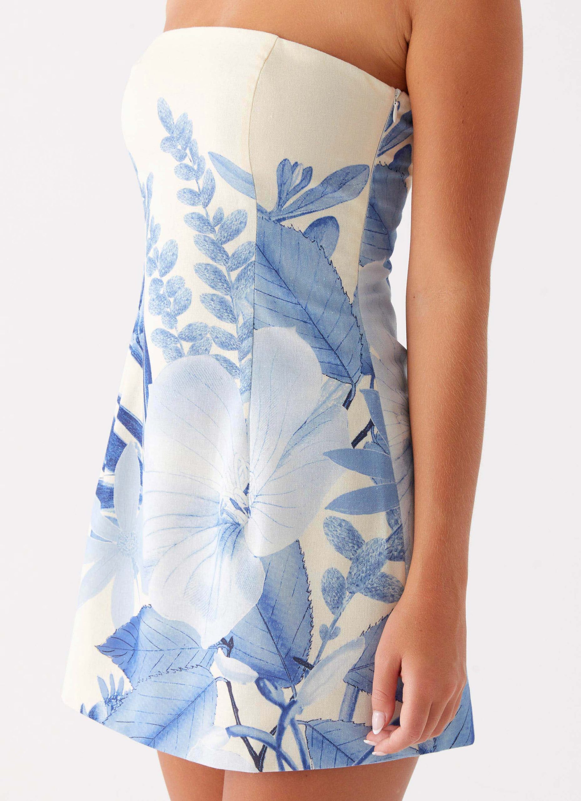 The Denby Strapless Mini Dress is made for golden hour moments and sun-drenched escapes. Featuring a chic straight neckline and a flattering mini length. this silhouette is crafted from a breathable linen-blend fabric with a vibrant floral print. Designed with structured princess seams to sculpt the figure and a smooth. fully lined finish. it’s an effortlessly bold statement for sunset-to-after-dark style.