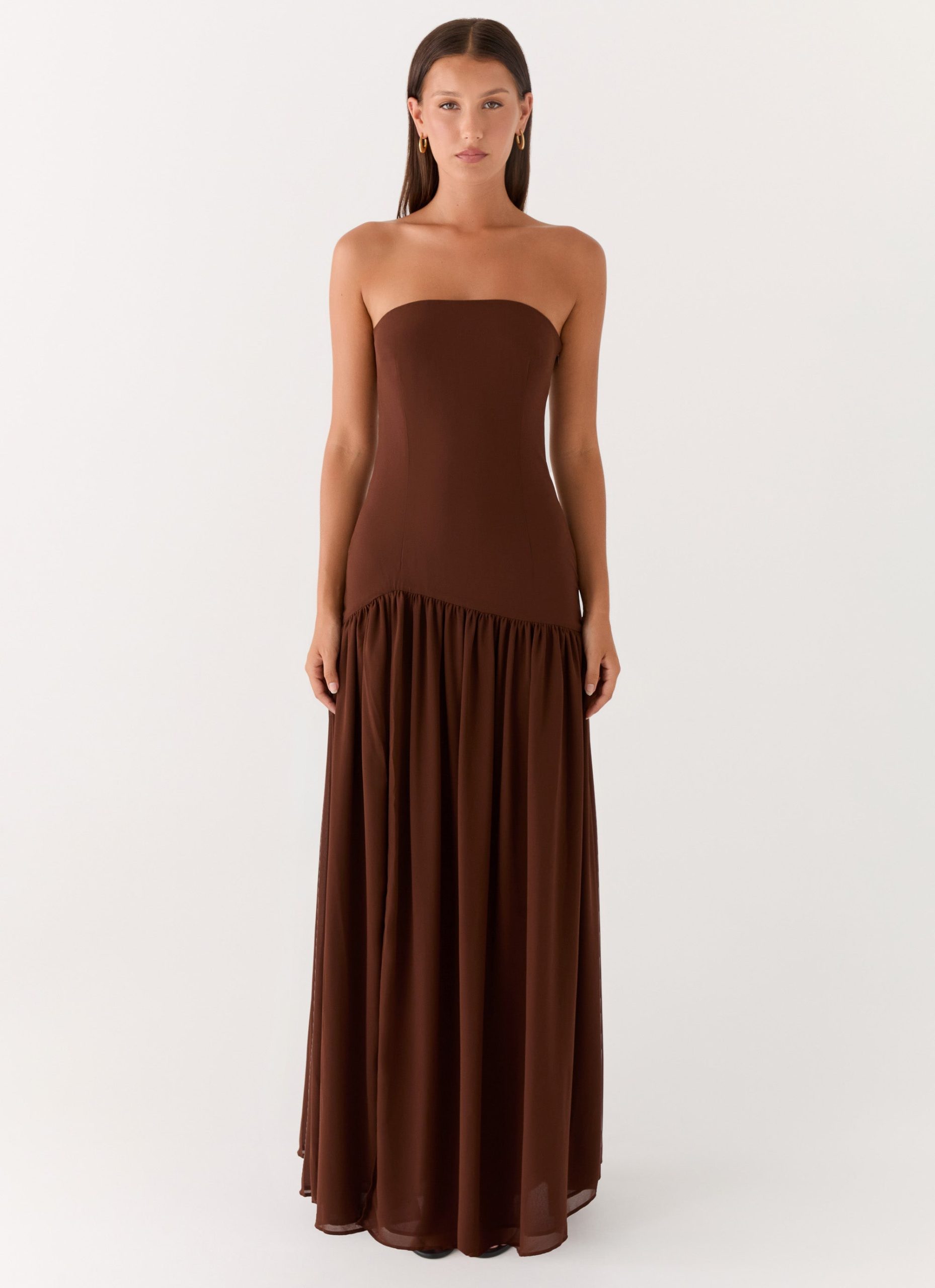 Eden Strapless Maxi Dress – Brown