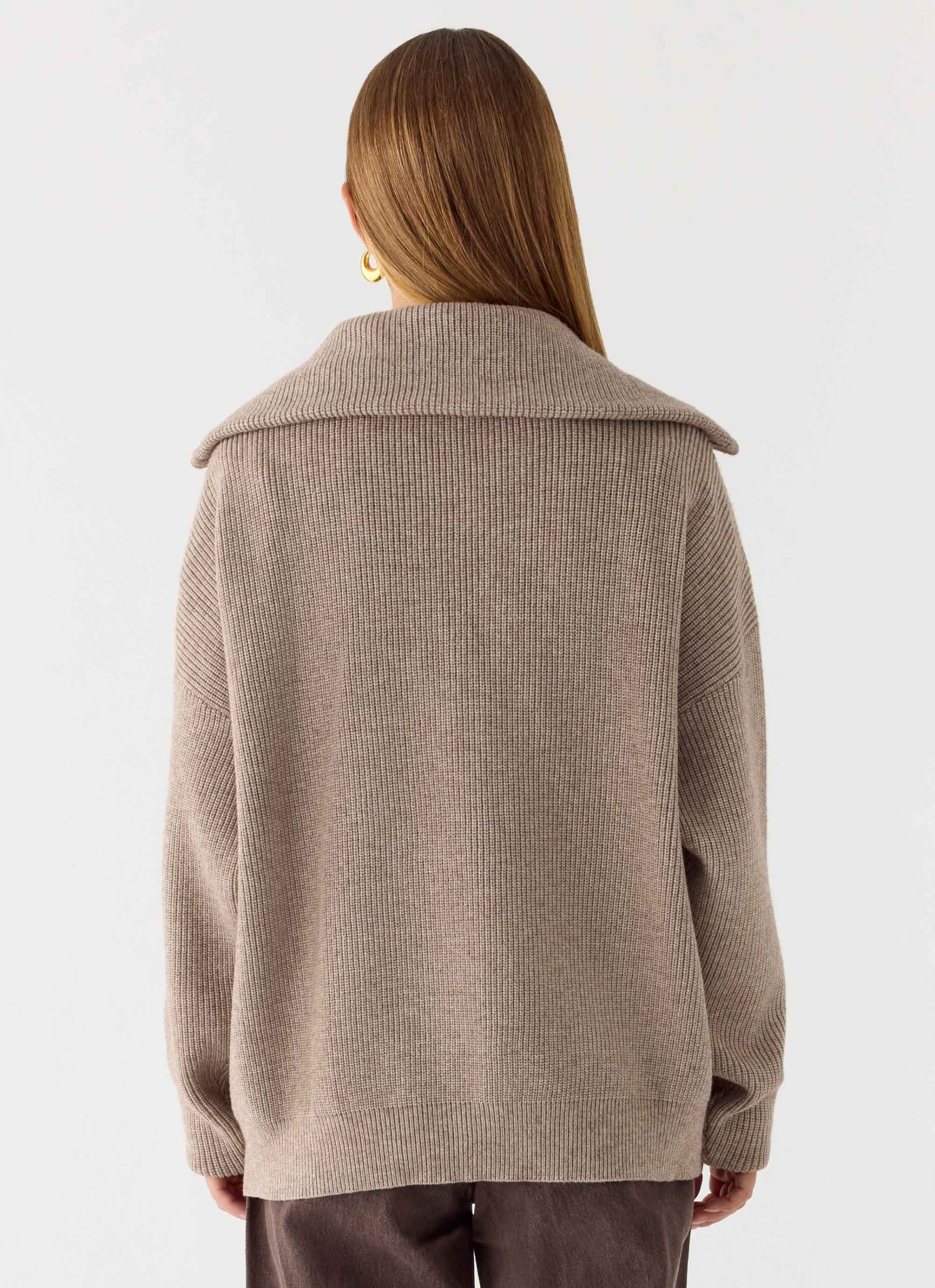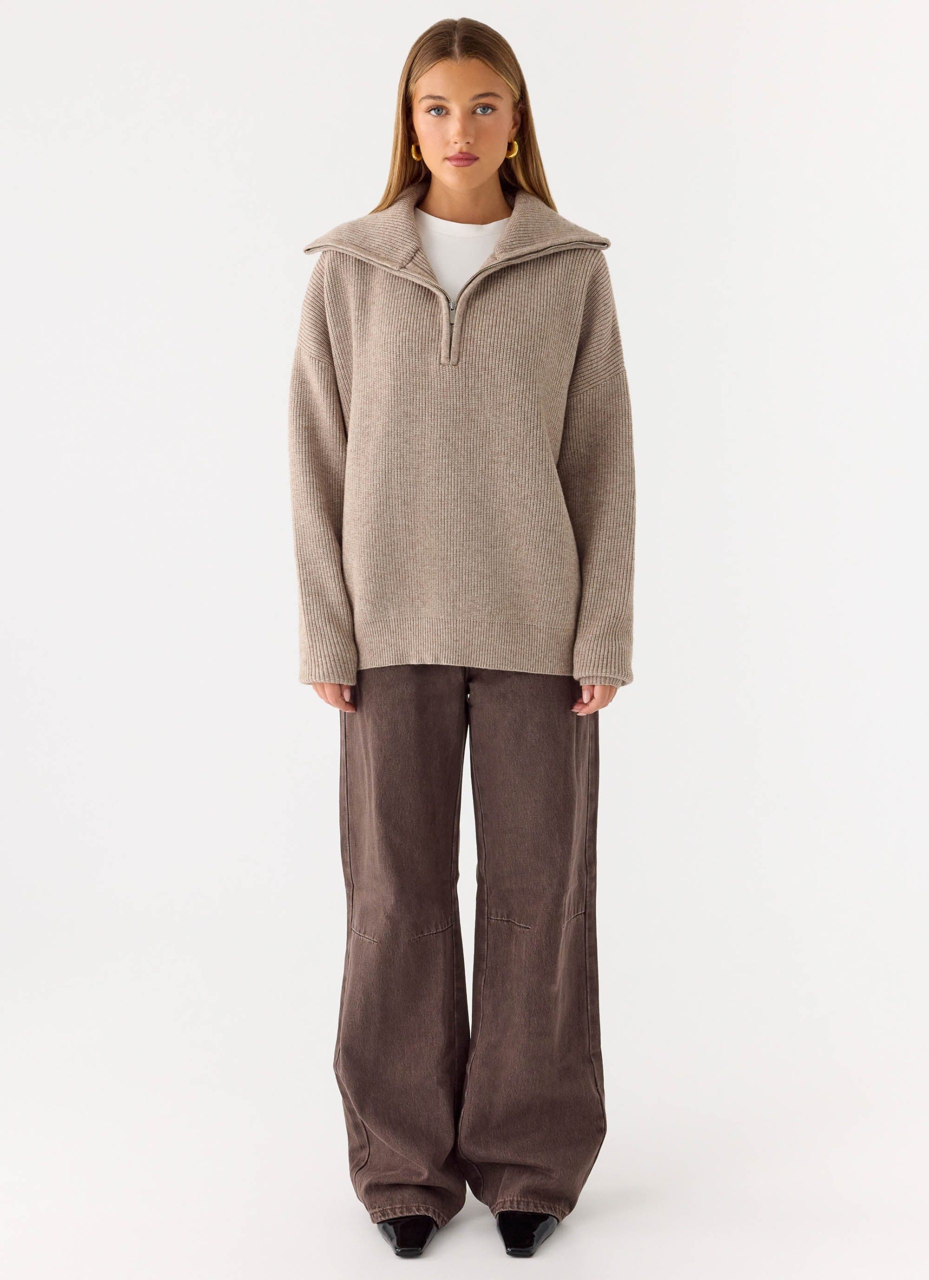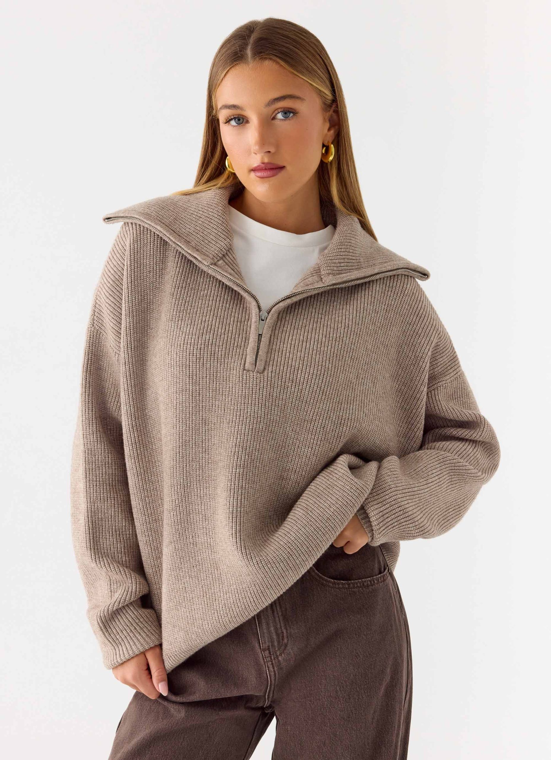 Eirena Quarter Zip Knit Sweater – Tan