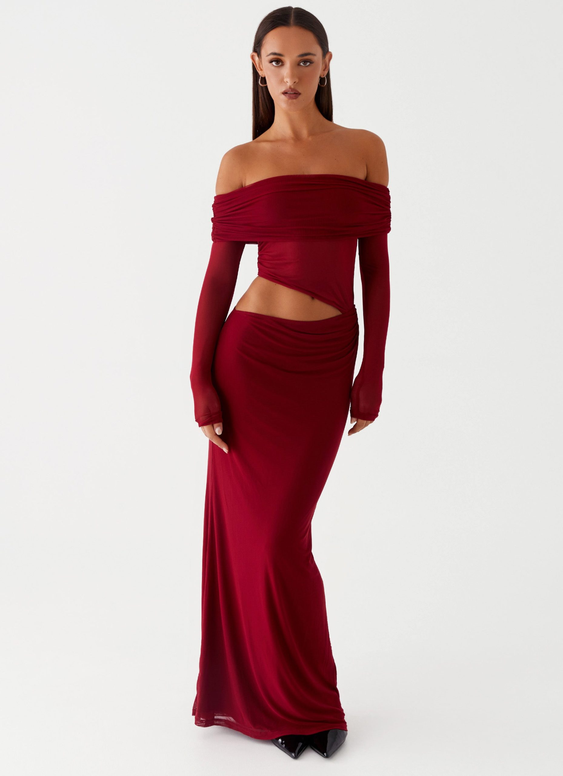 Slip into the Emery Maxi Dress and own the night. Featuring an off-shoulder neckline and bold side cutout. this fully lined beauty combines elegance with just the right amount of edge for those late-night moments under the stars.