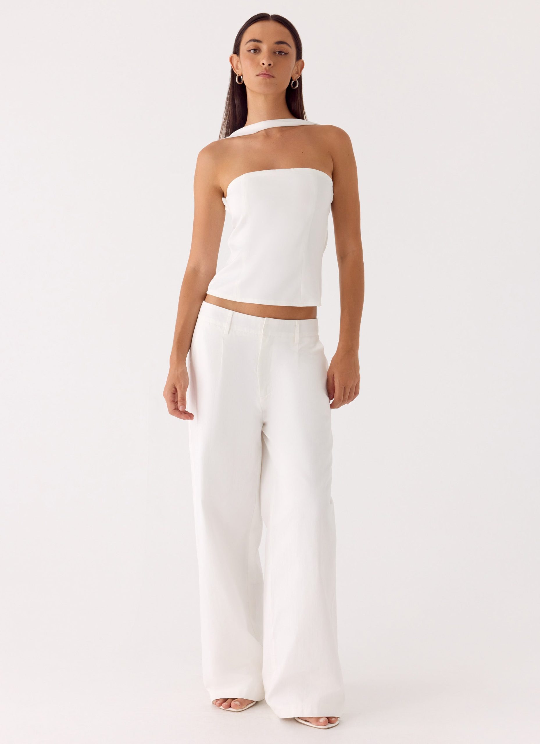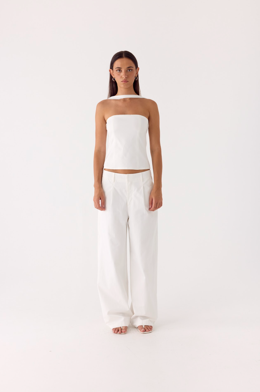 The Emilia Pant is made for sunlit days that drift into golden evenings. Featuring a mid-rise waistline and relaxed fit. it skims the silhouette with effortless ease. Belt loops. front pleats. and a hook-and-zipper closure add tailored sophistication. making this pant both polished and editorial-ready.