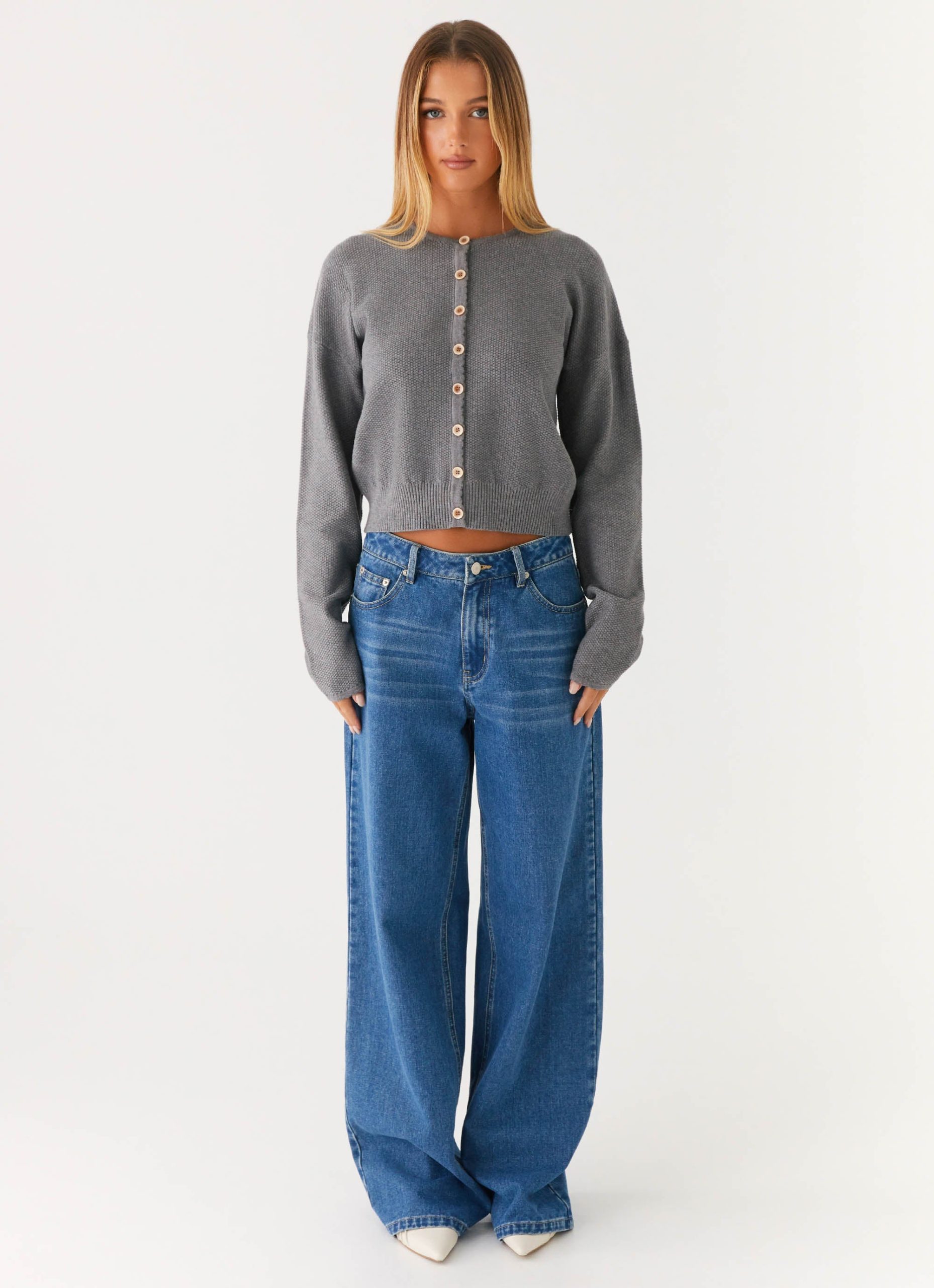 The Etty Knit Cardigan features a classic unlined design with front button closures. offering a relaxed and comfortable fit. Its soft knit fabric makes it perfect for layering. providing warmth without compromising style.