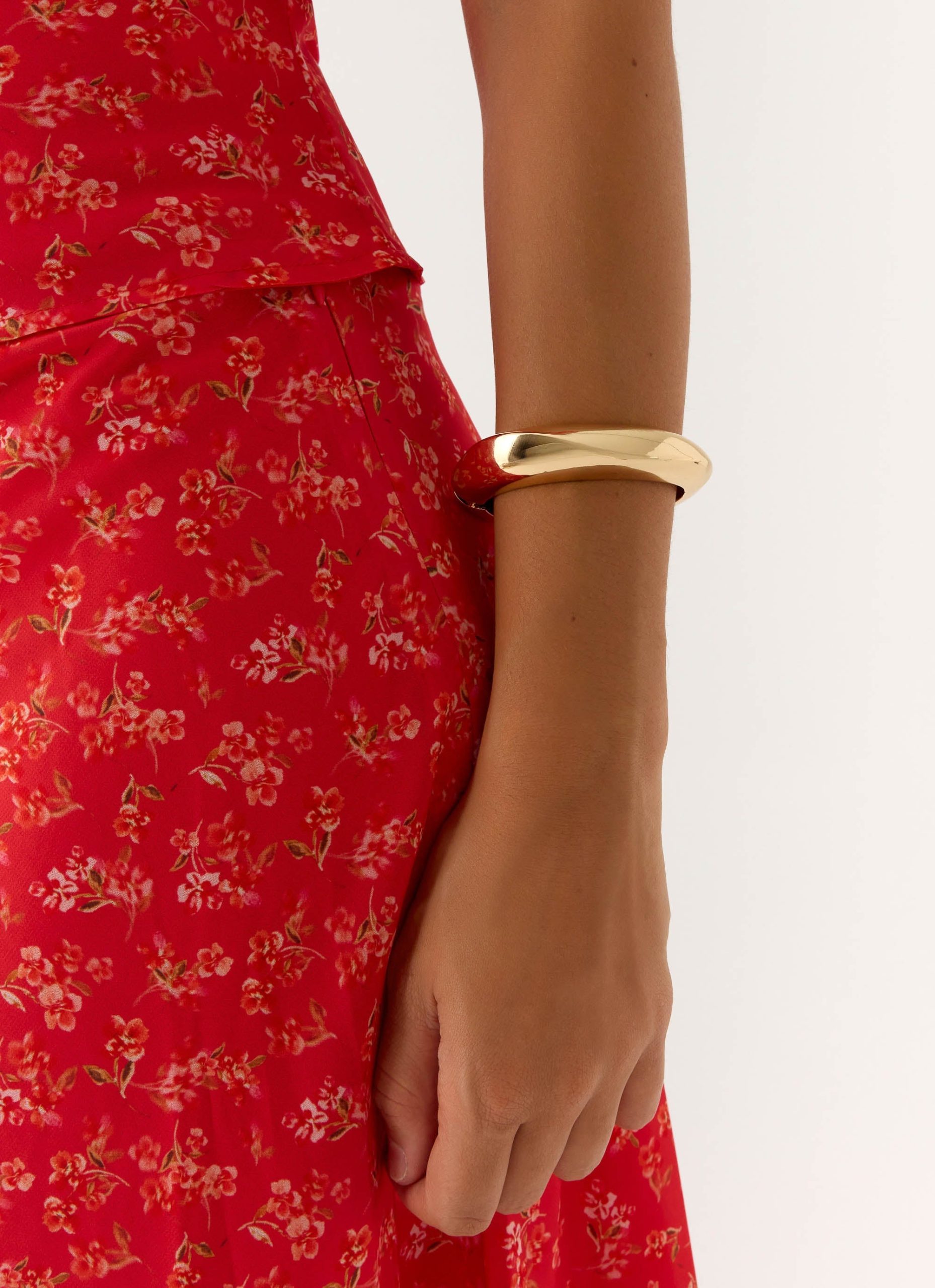 The Faded Bloom Bangle is designed for effortless. polished style that transitions from sun‑soaked days to golden‑hour evenings. Crafted with a sleek. minimal silhouette. this one‑size accessory adds refined elegance whether worn solo or perfectly layered.
