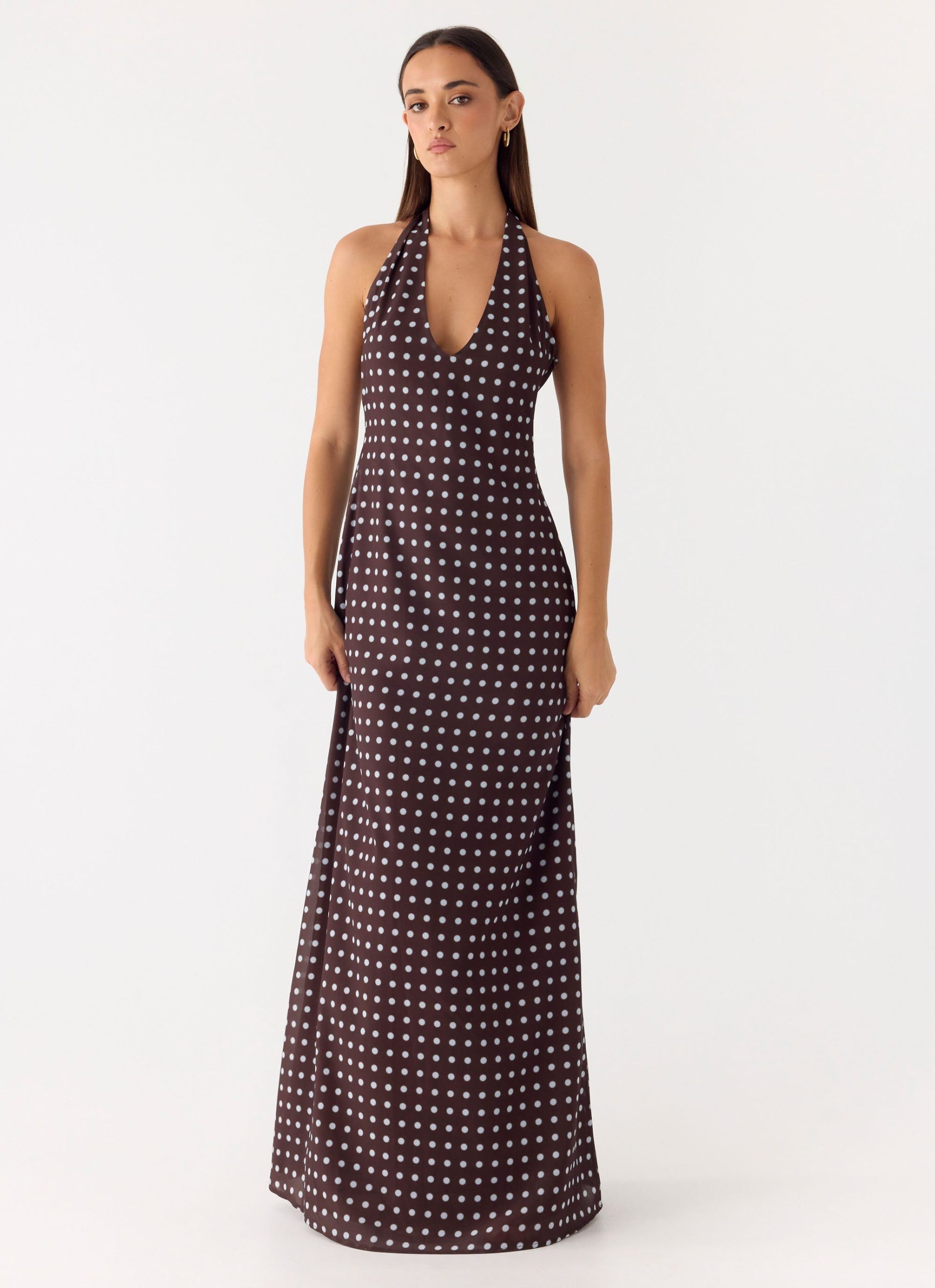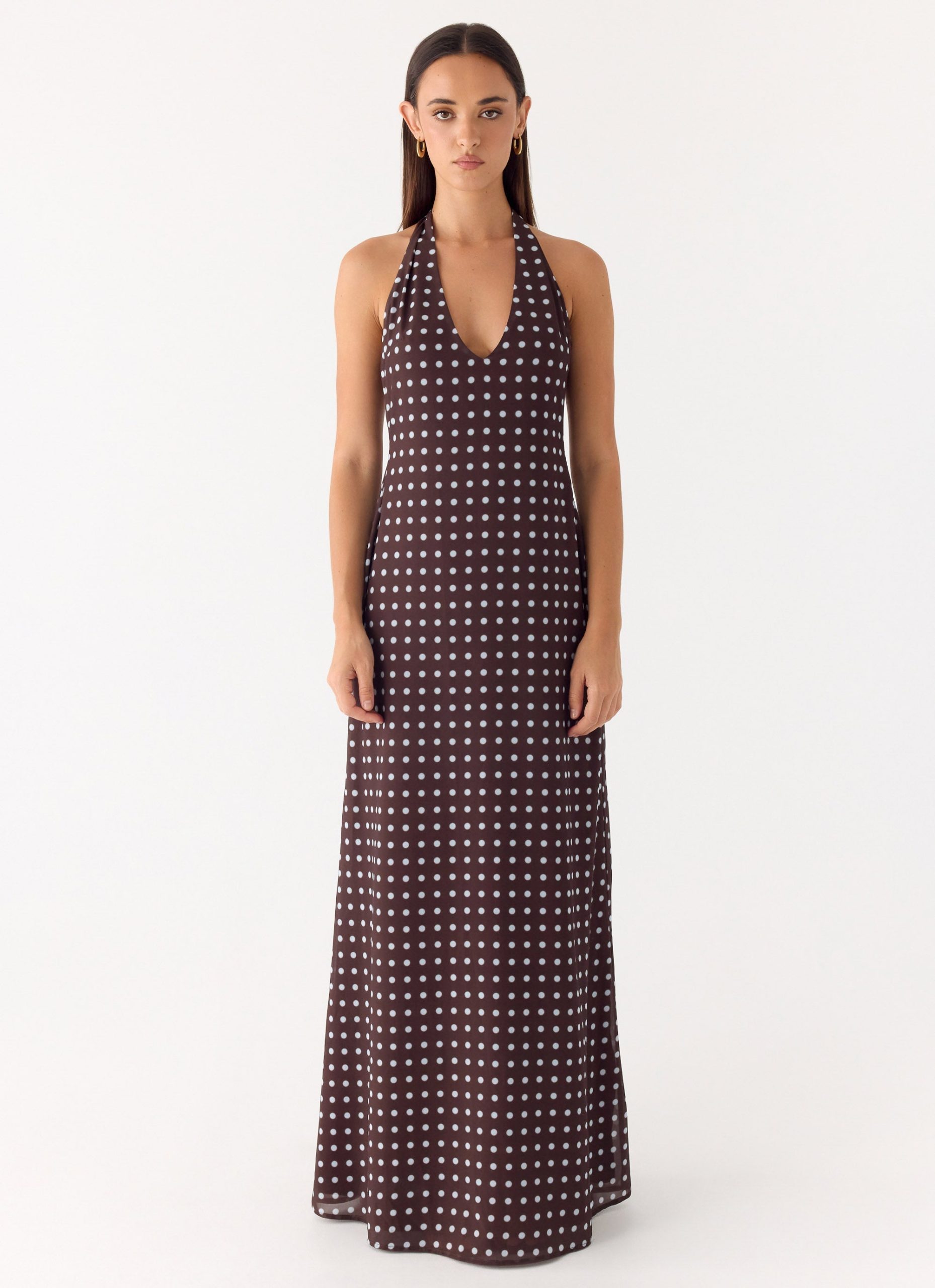Be the first to review “Float Away Maxi Dress – Chocolate Blue Dot”