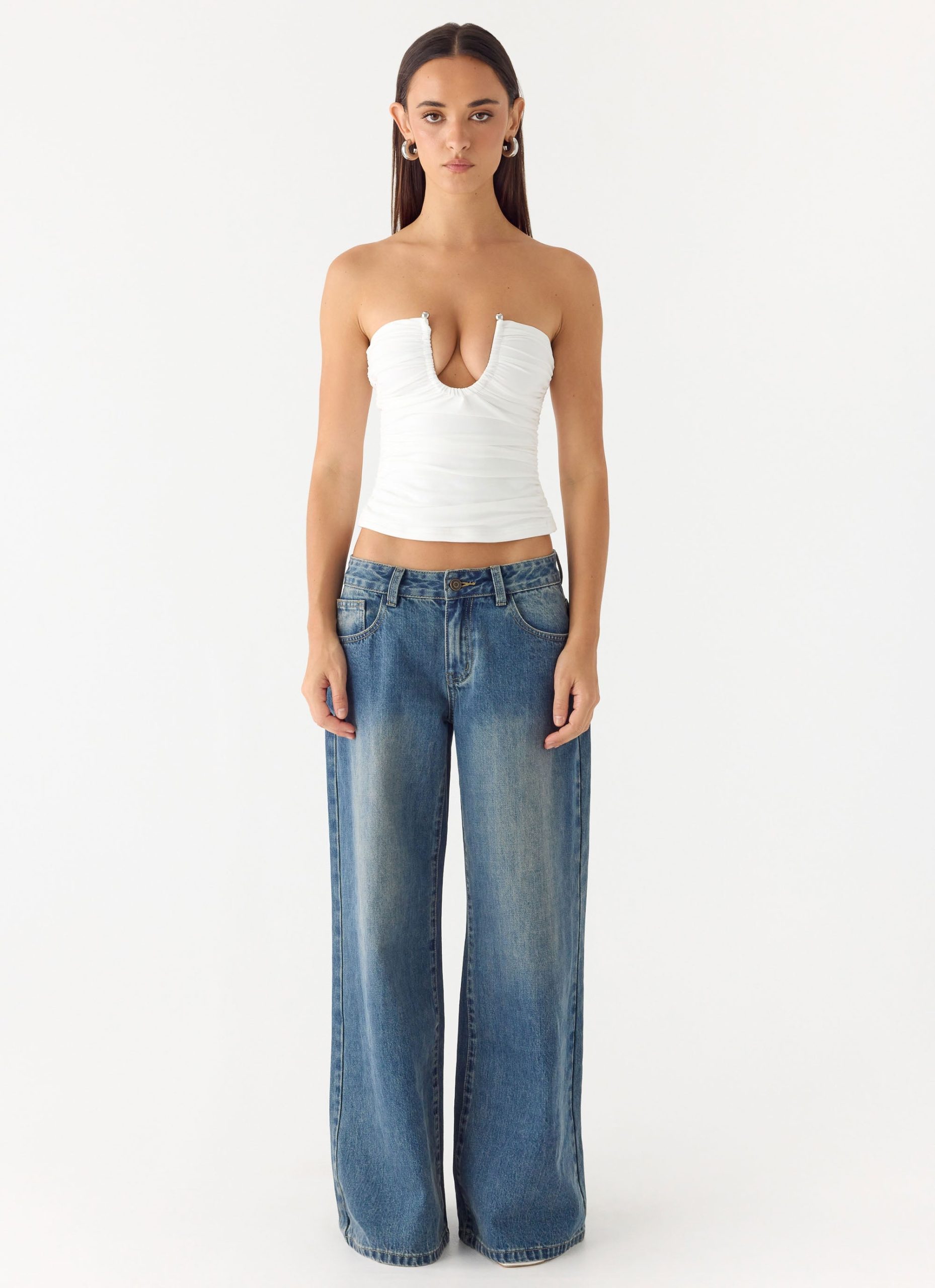 The Francis Top is made for evenings that transition effortlessly from golden hour to after-dark moments. Featuring a strapless deep plunge neckline and stretch jersey fabrication. this crop-length style hugs the body with confidence and ease. Front metal hardware adds an editorial edge. making it perfect for warm nights and playful escapes.
