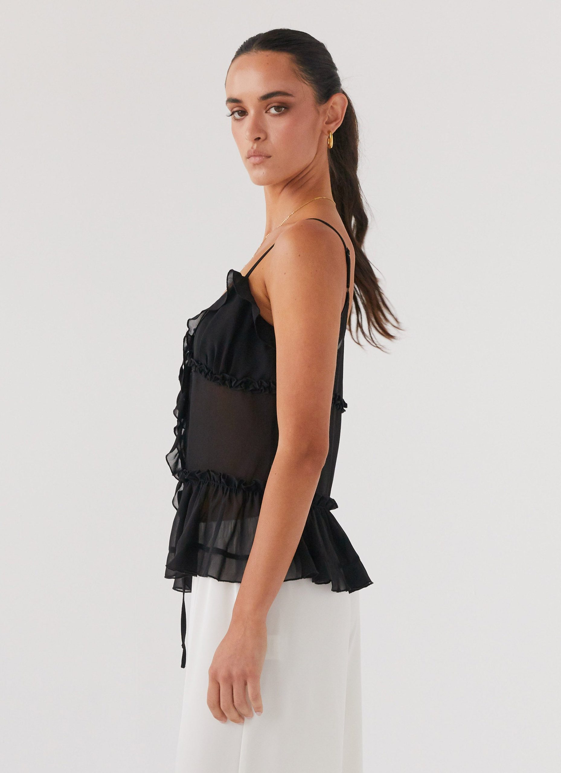Elevate your style with our Got It Bad Frill Cami Top. This top features a chic V neckline and elegant ruffle detailing for a touch of unique flair. The adjustable front tie allows for a customised fit. Crafted with a sheer fabric. it strikes the perfect balance between trendy and comfortable.