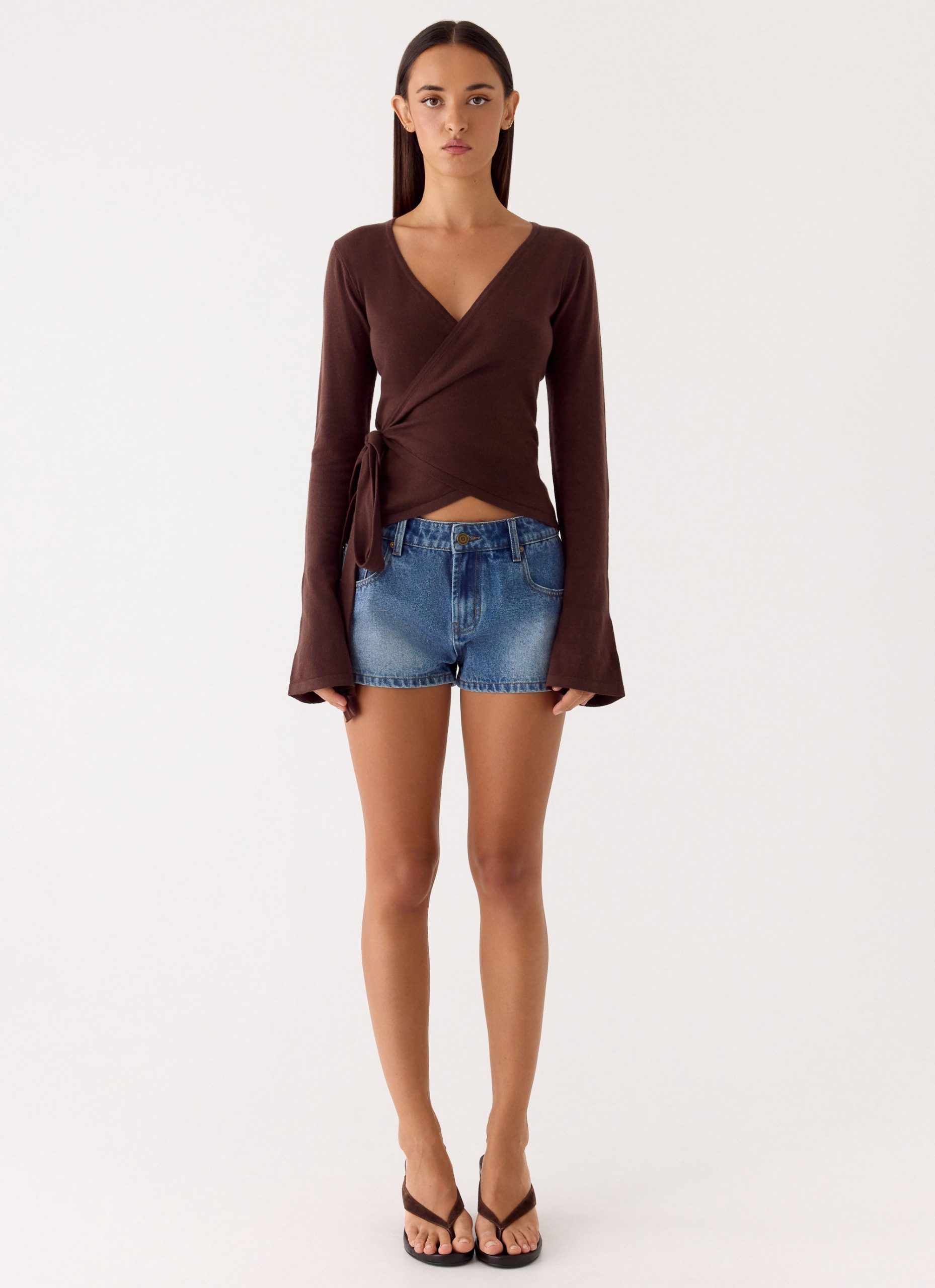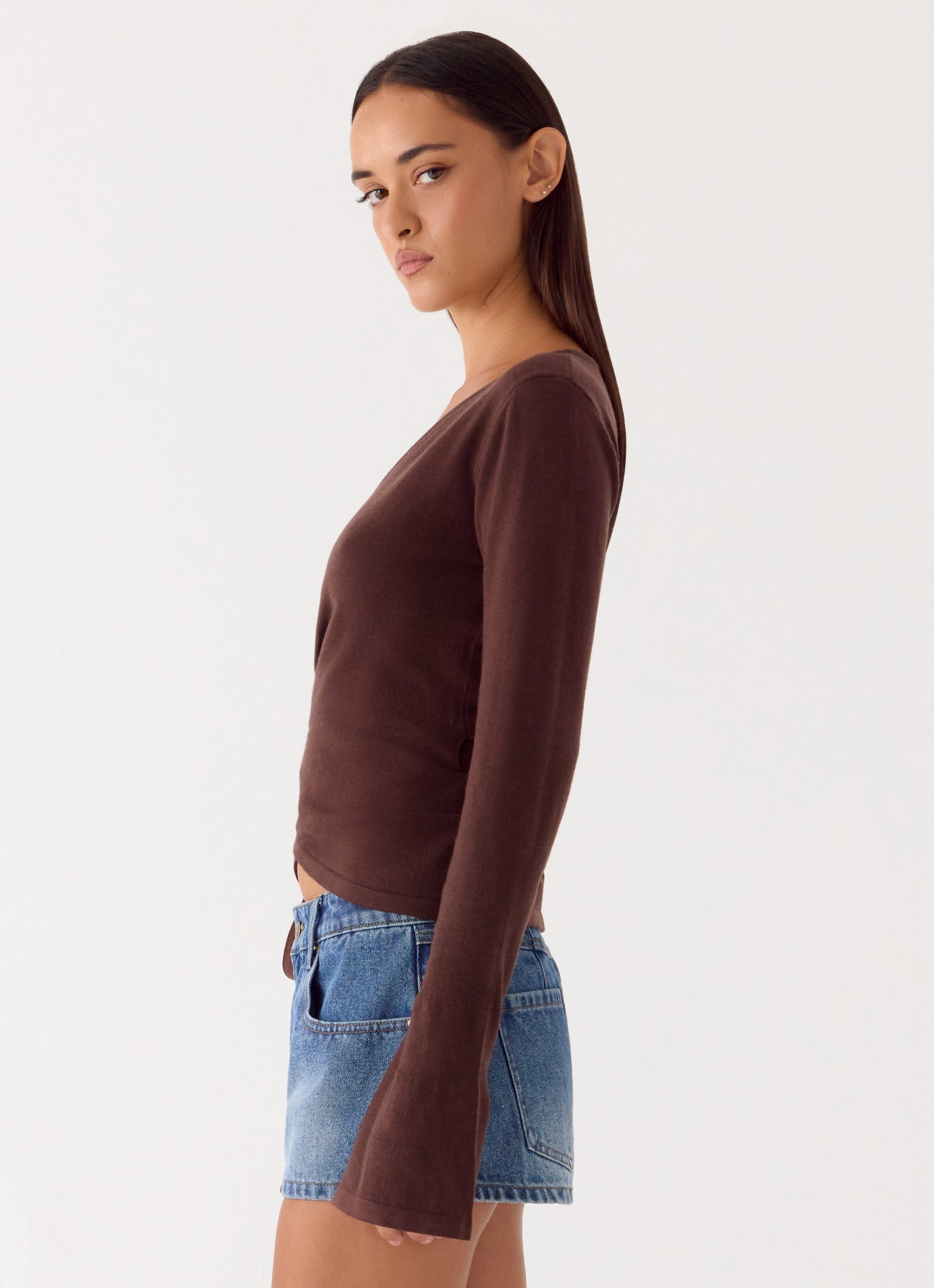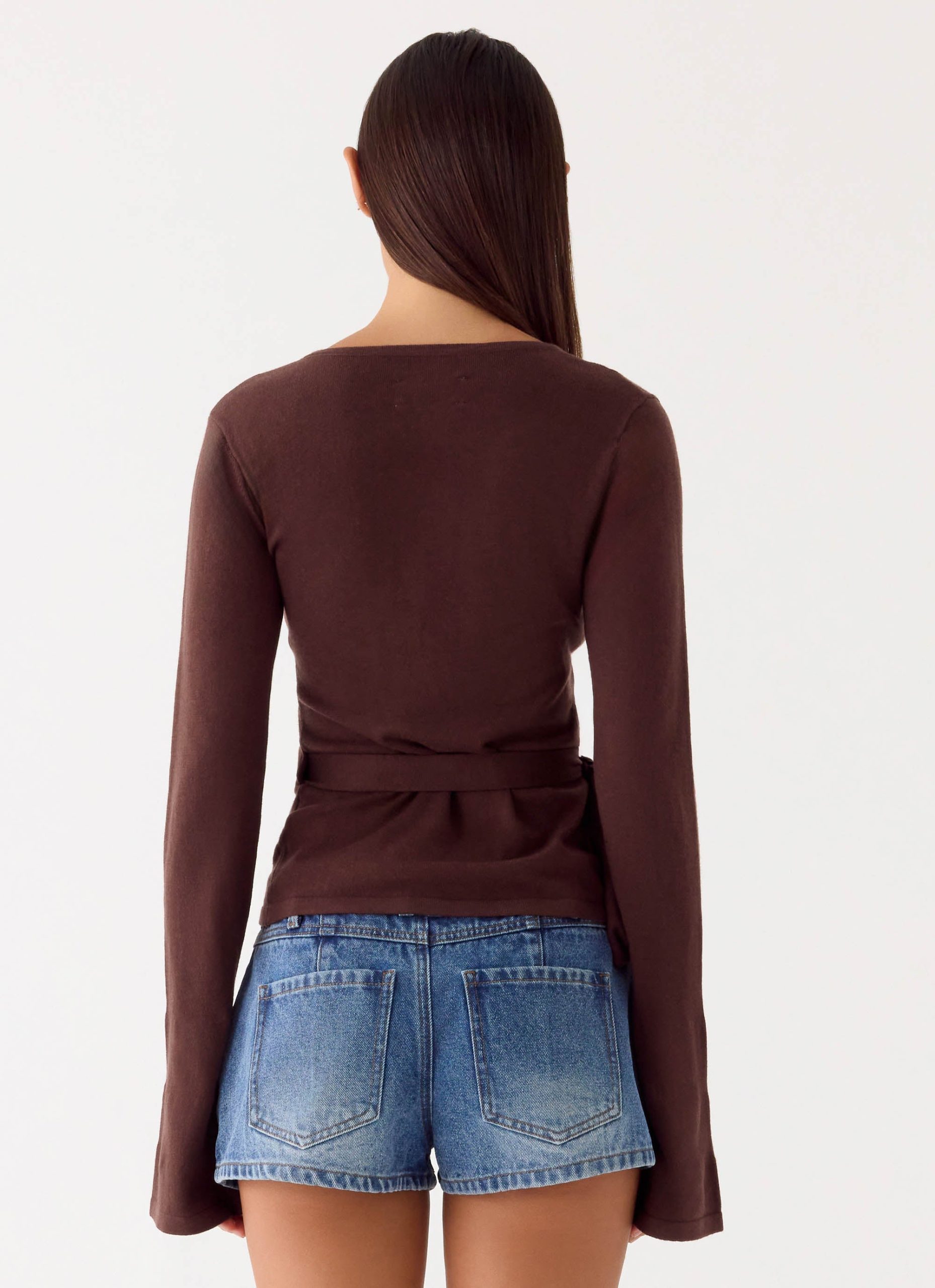 The Halo Knit Top is made for breezy days that stretch into golden evenings. With a wrap-front design and side tie. it flatters the waist while long. relaxed sleeves lend an effortless. editorial feel. Crafted in a soft. lightweight knit. it’s perfect for layering or wearing solo for a touch of relaxed sophistication.