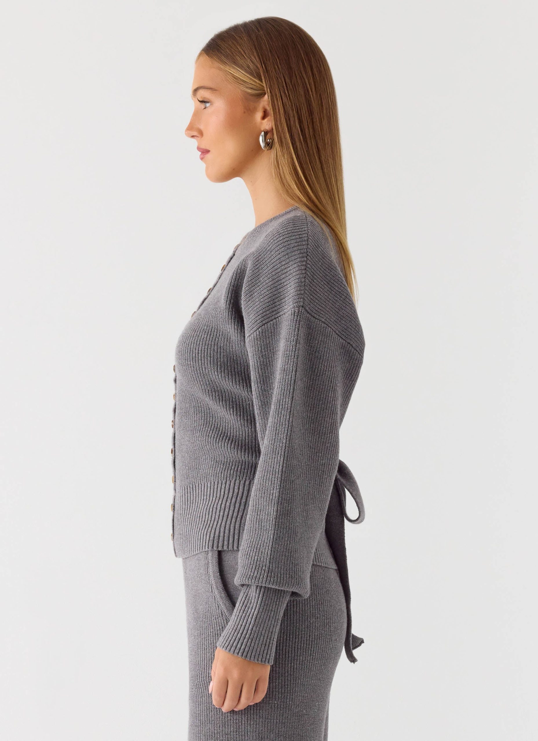 The Harrison Cinched Knit Cardigan is made for relaxed moments drenched in golden-hour warmth. With a soft ribbed knit and effortless drop-shoulder silhouette. it features a subtle cinched shape through the body and romantic balloon sleeves that add movement. Finished with front button detailing. it’s the perfect layer for breezy PM adventures.