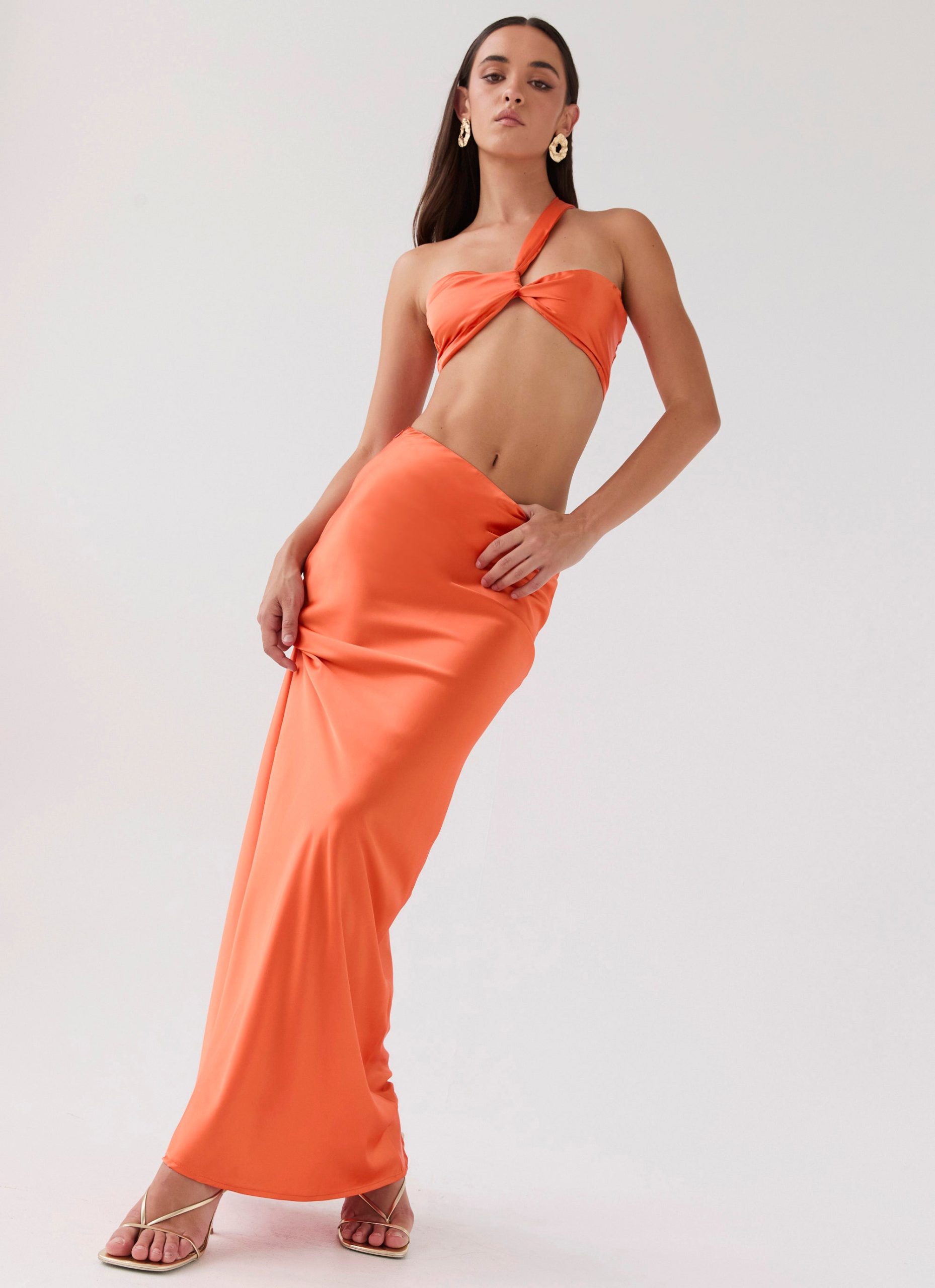 Elevate your wardrobe with our Hidden Oasis Satin Maxi Skirt. This skirt offers a mesmerising silhouette in luxurious satin fabric. Pair it effortlessly with the Hidden Oasis Satin Top for a coordinated look that embodies style from sunset to sundown.