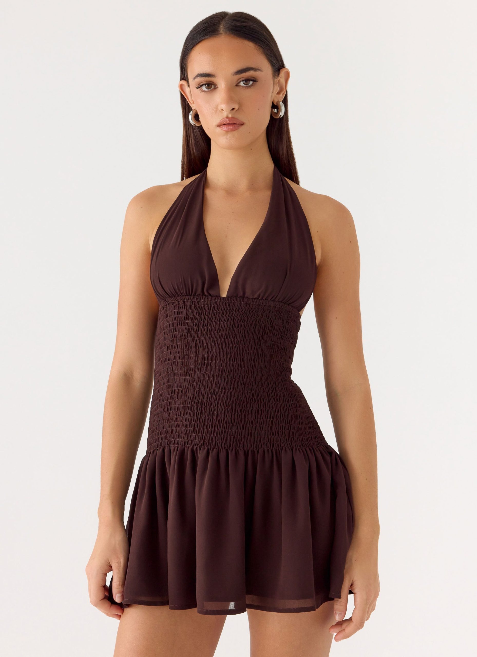 Effortlessly striking. the Holden Mini Dress brings sultry sophistication. With a low V neckline. ruched bodice. thick neck straps. and an open back. this mini is made to capture the night with every move you make.