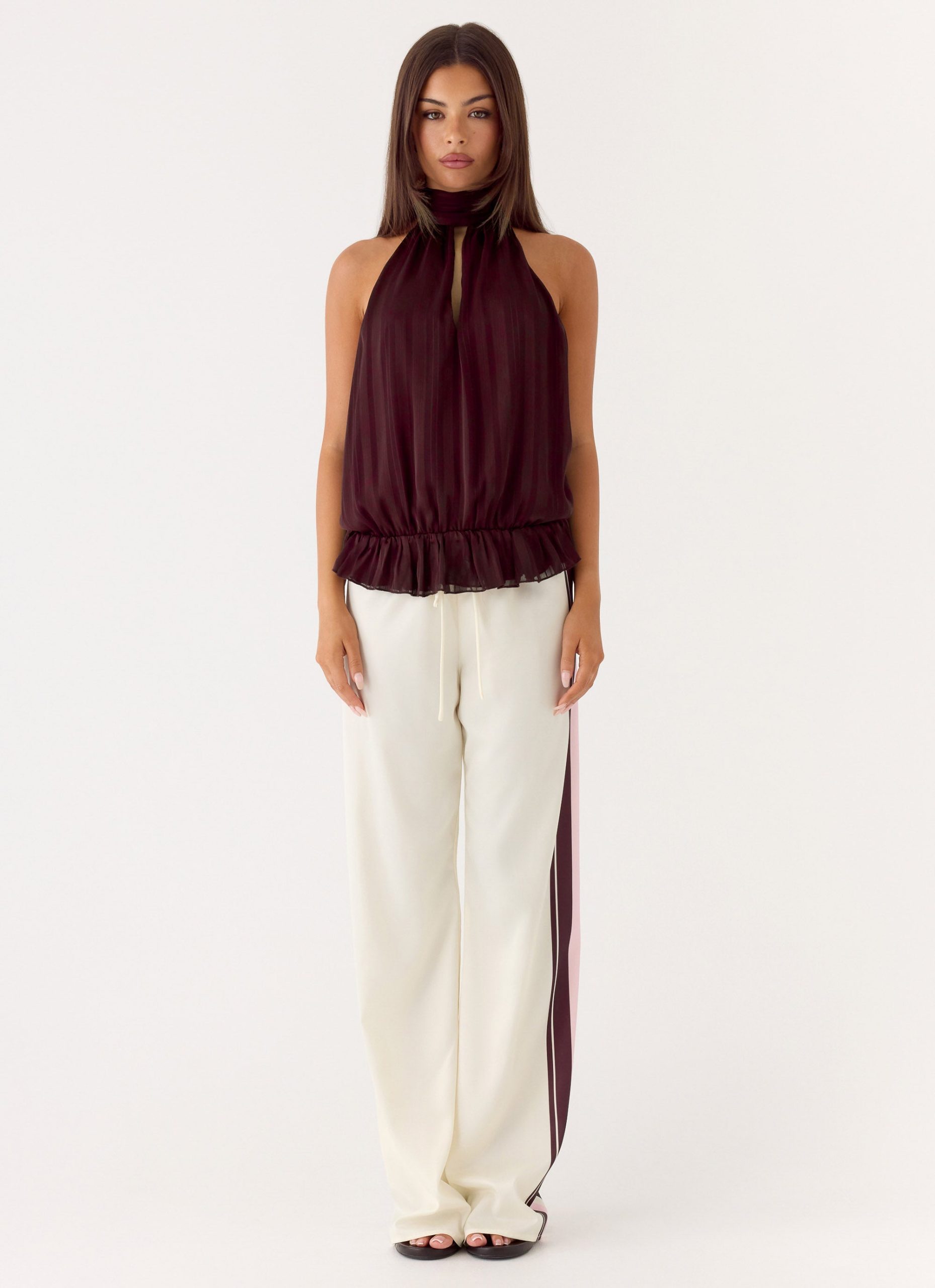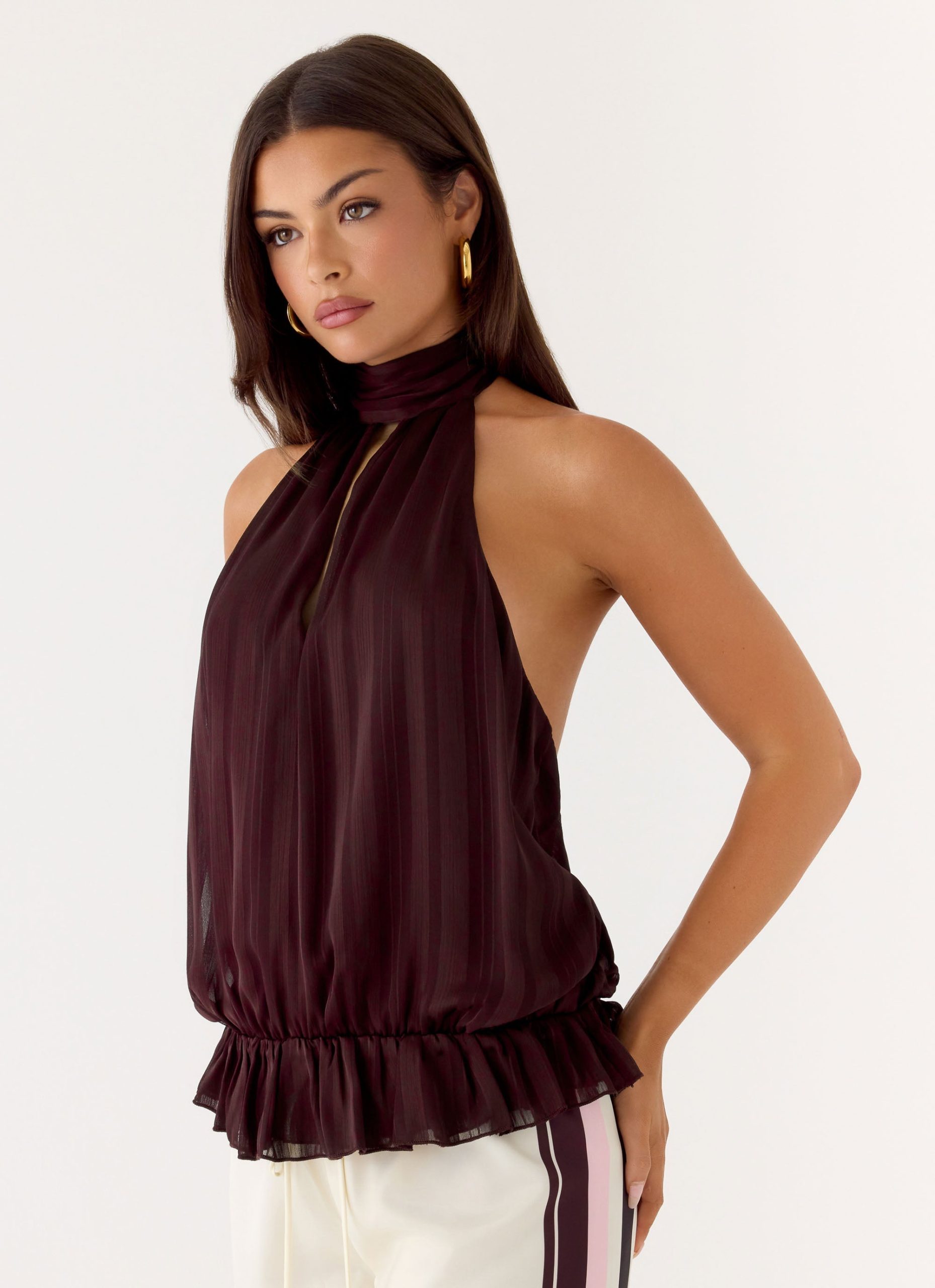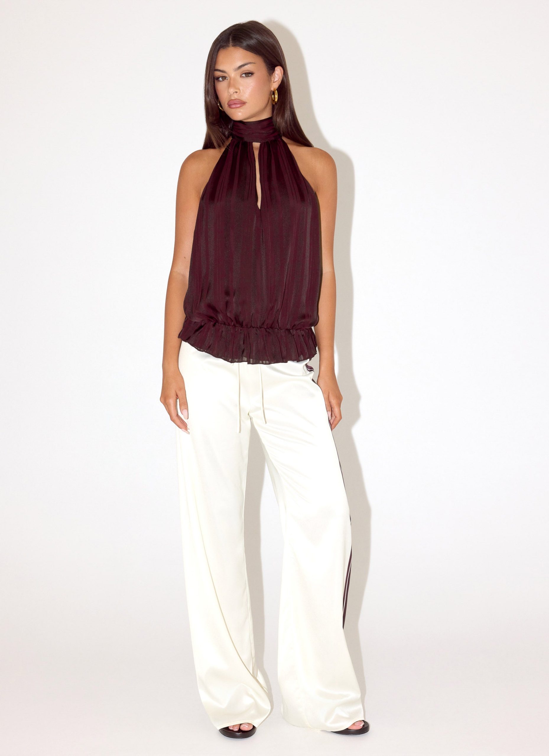 The Hydro Halter Top features a halter neckline with a front keyhole and a low-back design. it balances a sculpted fit with fluid movement. Fully lined with an elasticated waistband and long adjustable straps. it’s a statement piece that transitions effortlessly from sunset to sundown.