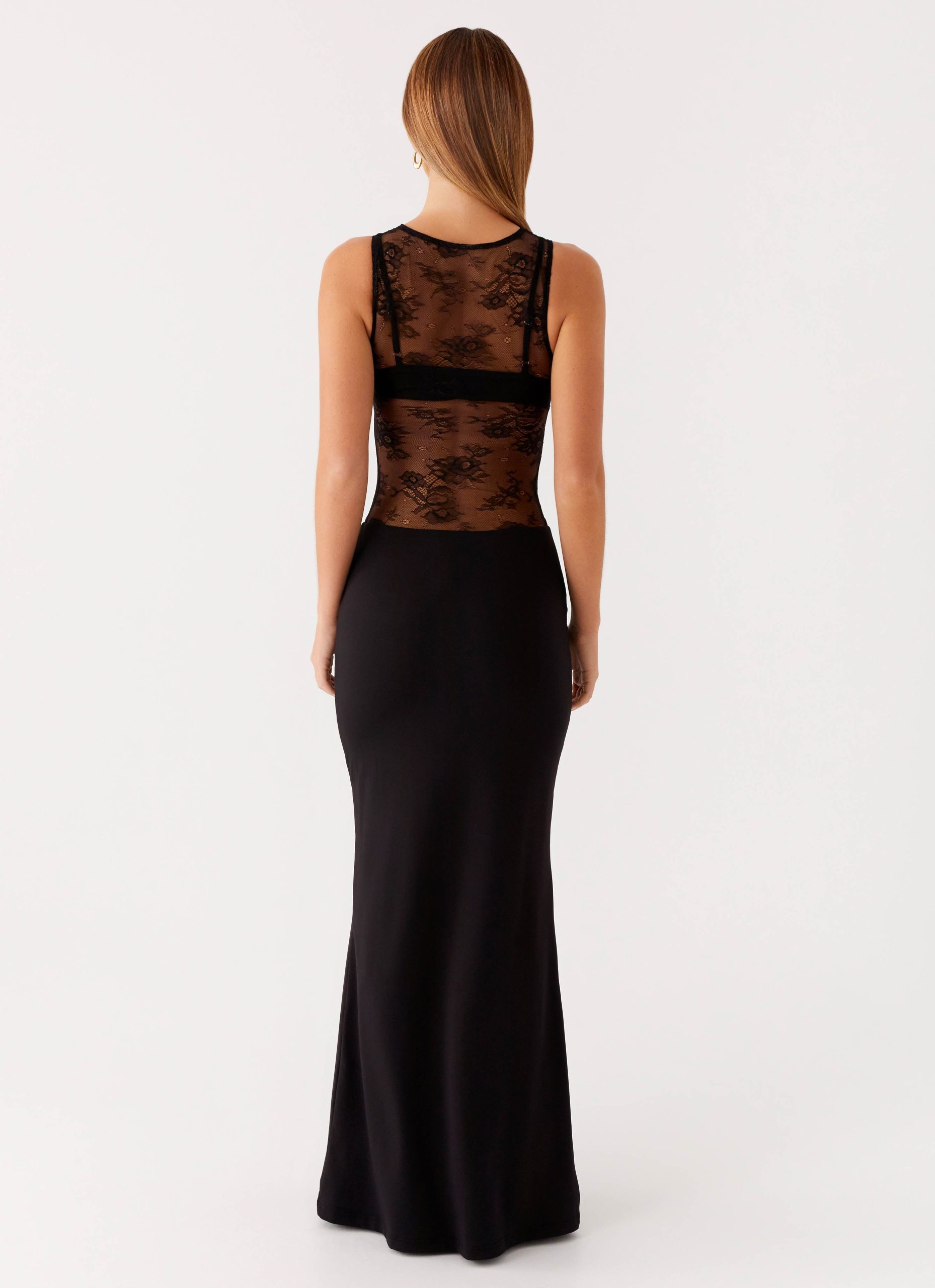The Imperial Maxi Dress in black is drama from every angle. Featuring a lace turtle neckline. sultry front cut-outs. and a waist-defining metal clasp. it’s crafted from stretch jersey for a sleek. body-hugging fit. A standout silhouette made for after-dark entrances.