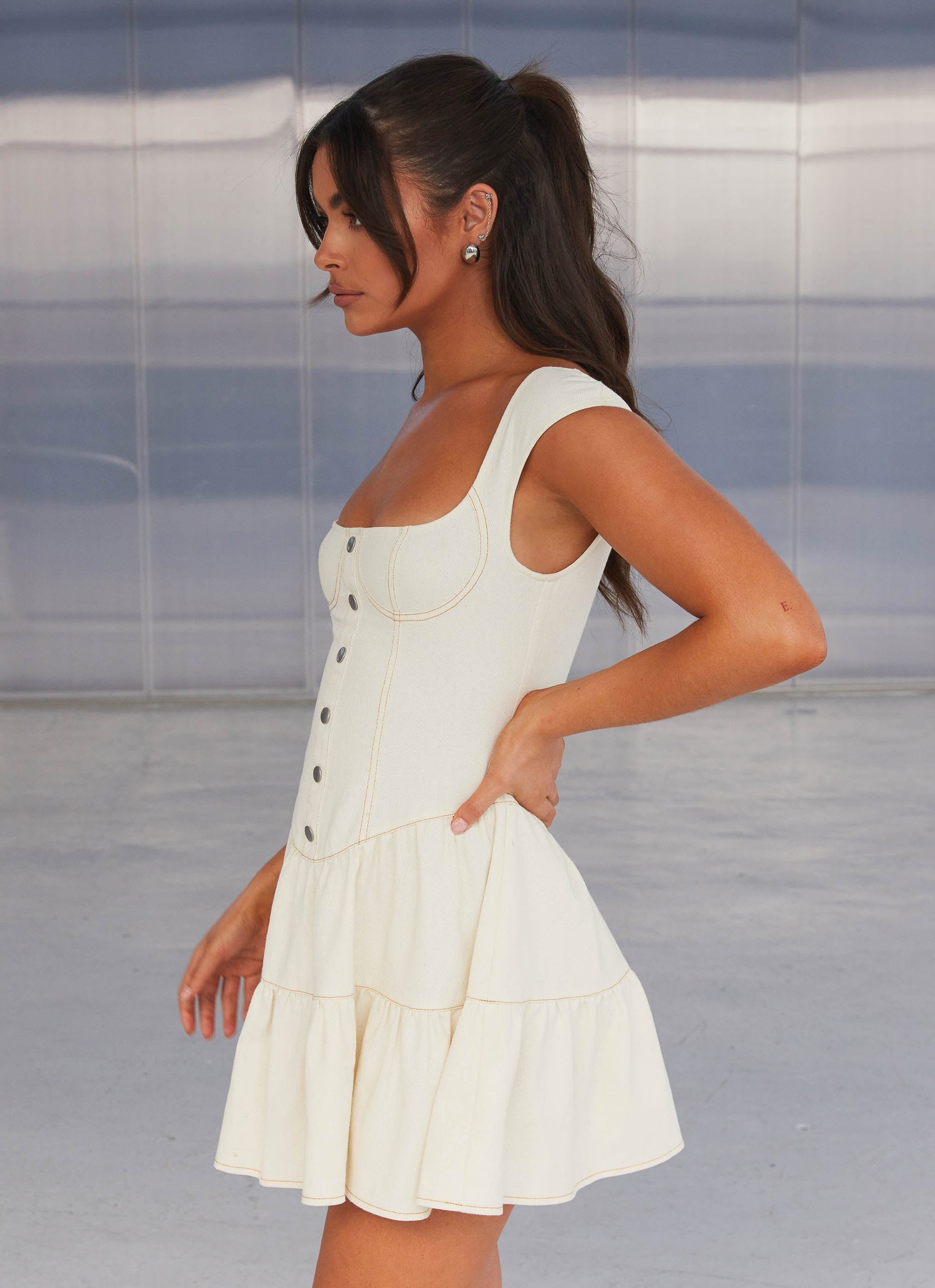 Pure sweetness! Introducing the Isabella Denim Bustier Dress. a charming piece crafted from lightweight denim. This mini dress features silver buttons along the fitted bustier. exuding a delightful vintage charm. Elevate your festival fashion game with a pair of cowboy boots for an effortlessly trendy ensemble!