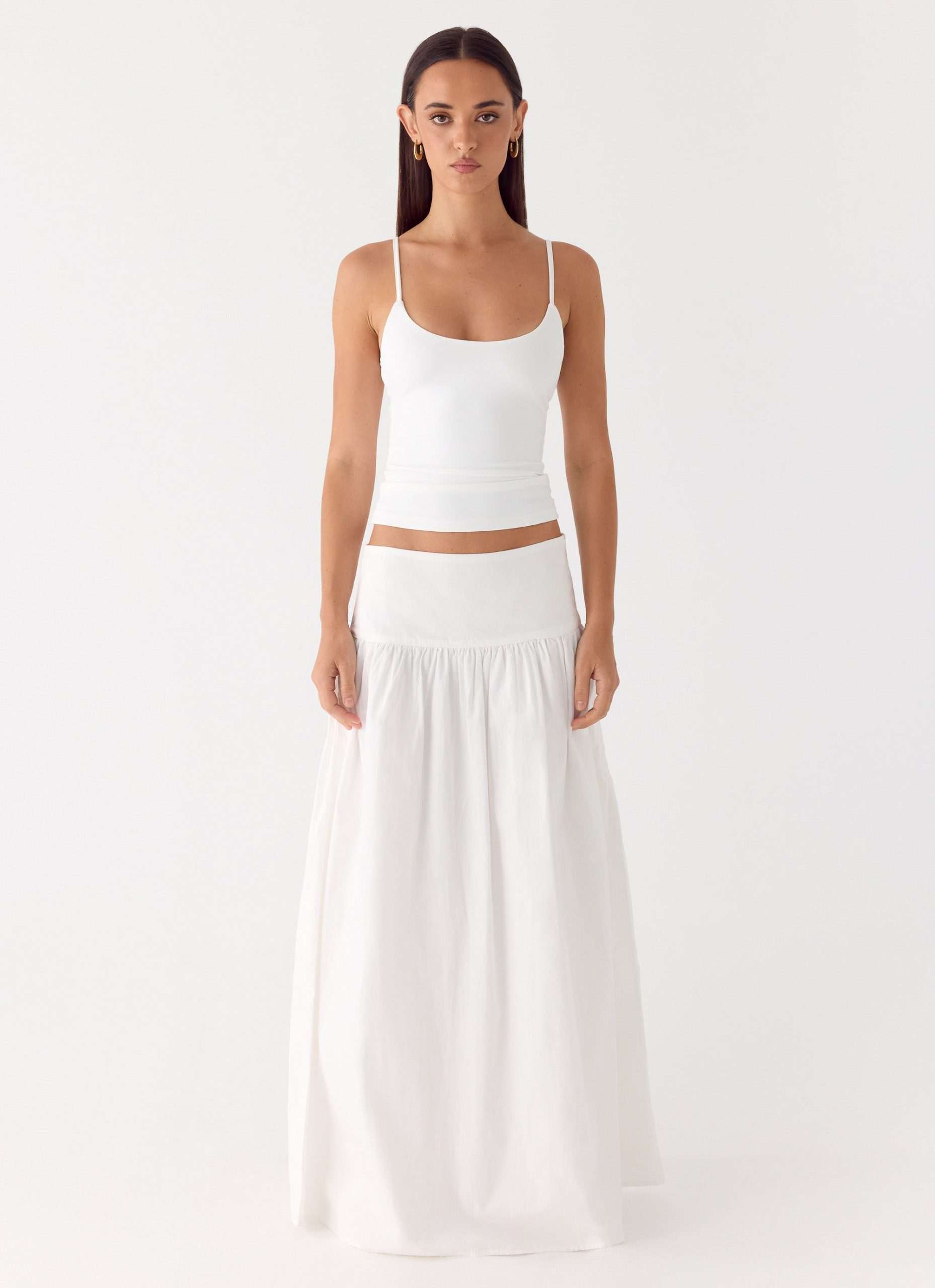 The Jayne Maxi Skirt is made for sun-drenched afternoons that stretch into balmy PM nights. With a low-rise fit and elegant drop waist. this maxi-length silhouette features subtle gathering for a flattering. body-conscious shape. Crafted in soft. breathable cotton. it’s perfect for beachside escapes or sunset cocktails.