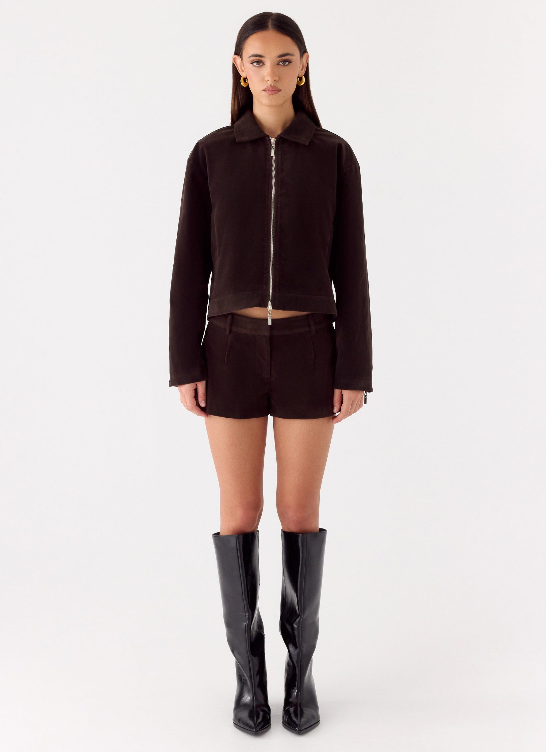The Jeremy Faux Suede Shorts are made for elevated daytime looks with a hint of edge. Sitting low on the waist with a mini length silhouette. these shorts are crafted in soft faux suede for a luxe feel. Fully lined and finished with an invisible zipper and pockets. they’re perfect for styling from brunch to sunset drinks.