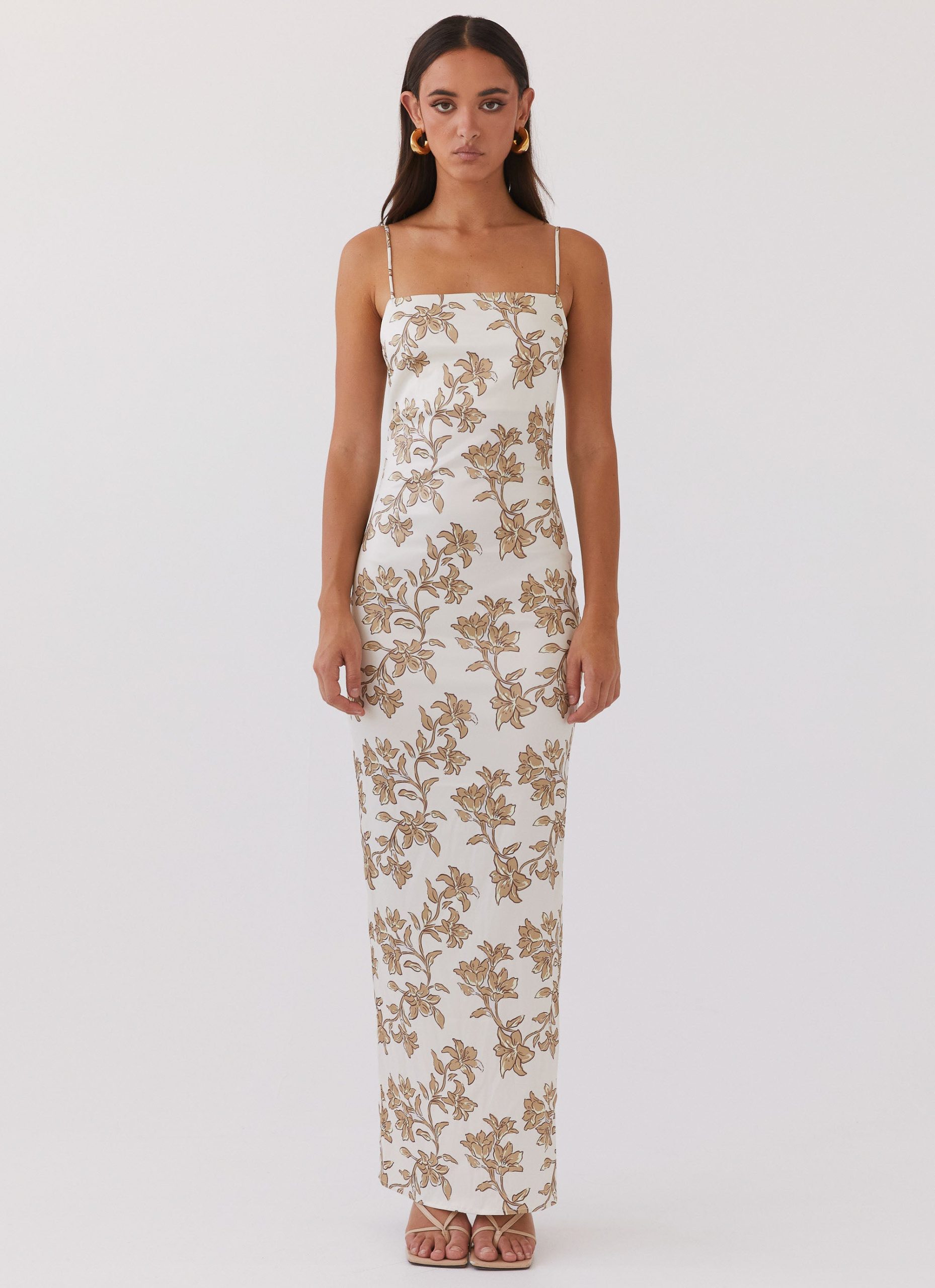 Flawless floral! The Lara Satin Maxi Dress features our exclusive Peppermayo print Hazel Bloom and a timeless straight neckline. Crafted from luxurious satin. this dress is elegant. perfect for any special occasion.