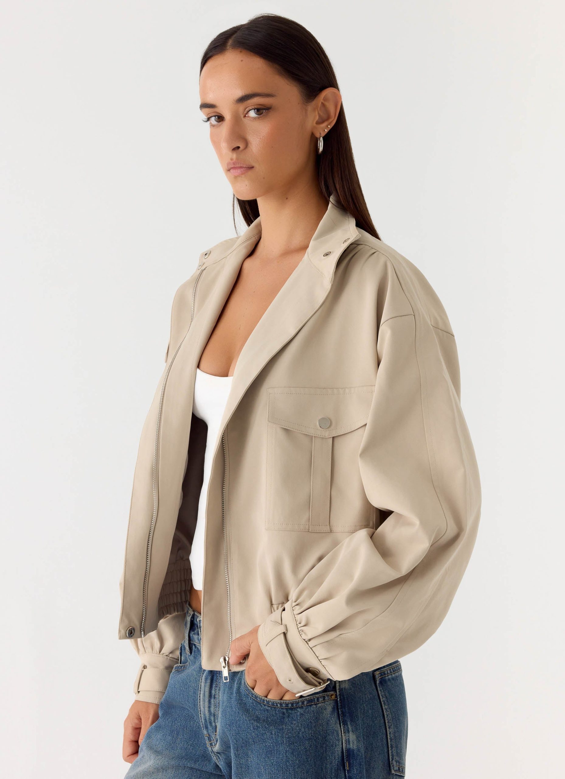 The Laylan Jacket is made for effortless. elevated layering with a relaxed silhouette. Featuring a button and zip-front closure with functional pockets. this lightweight outerwear piece offers easy style and modern versatility. Smooth and structured. it’s a go-to for day-to-night transitions.
