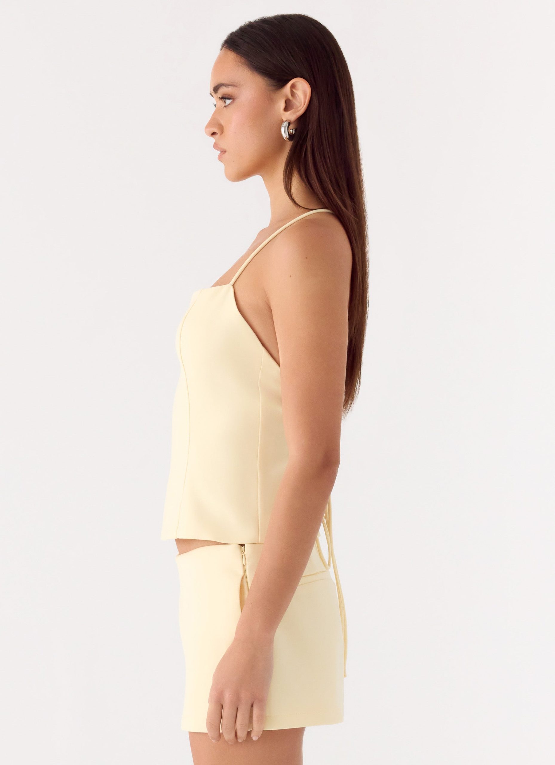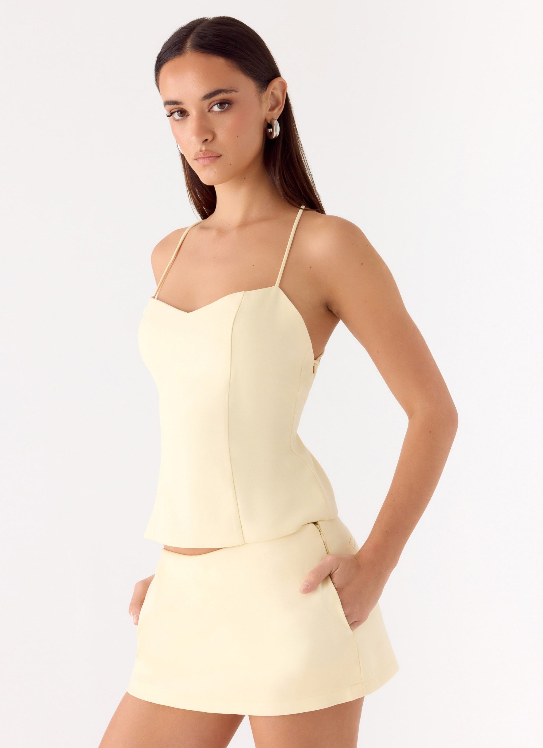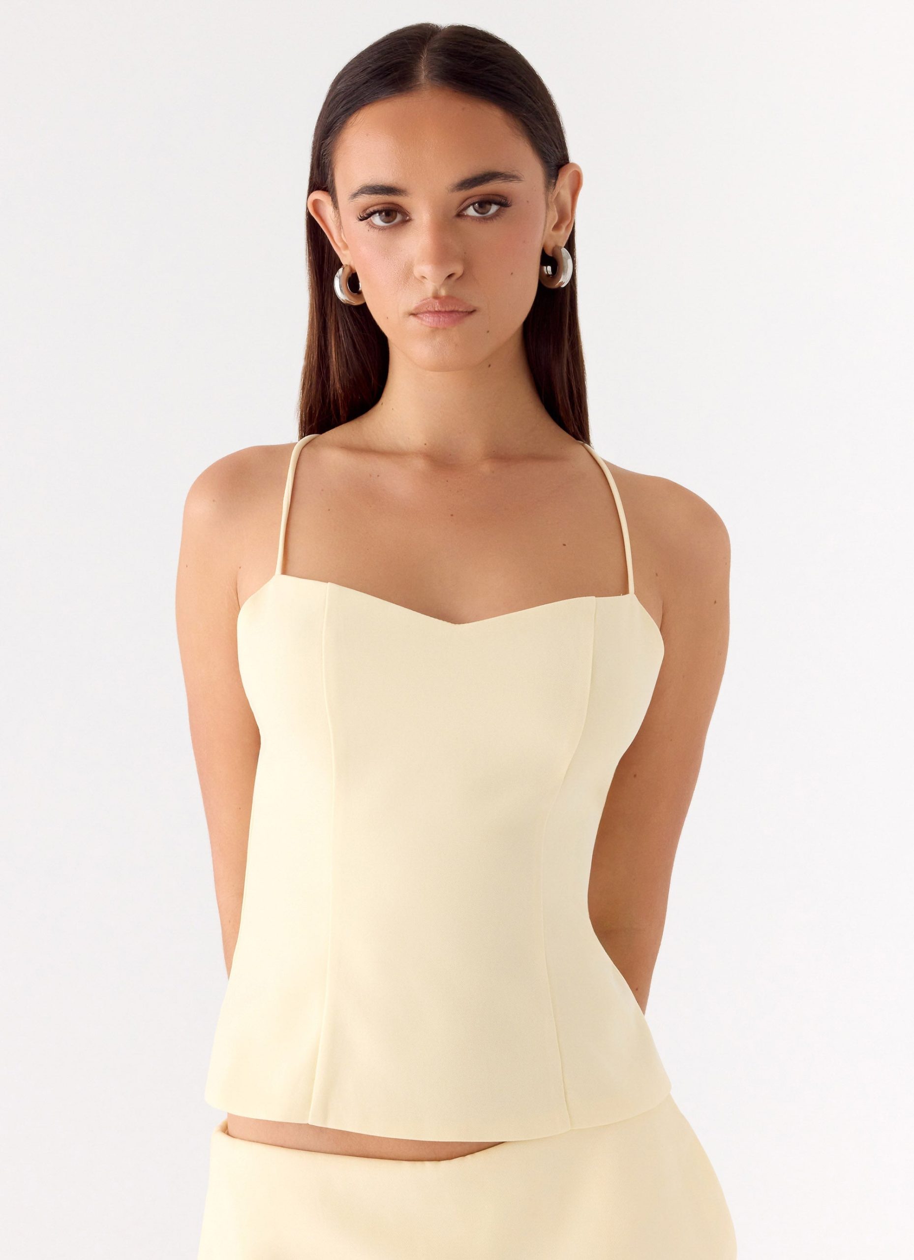 The Leray Top is made for sun-warmed afternoons that slip effortlessly into golden hour plans. Designed with a sculpted bodice fit. this piece features adjustable cross-back straps that frame the silhouette beautifully. Fully lined for a smooth finish. it’s equal parts confident and refined with an after-dark edge.