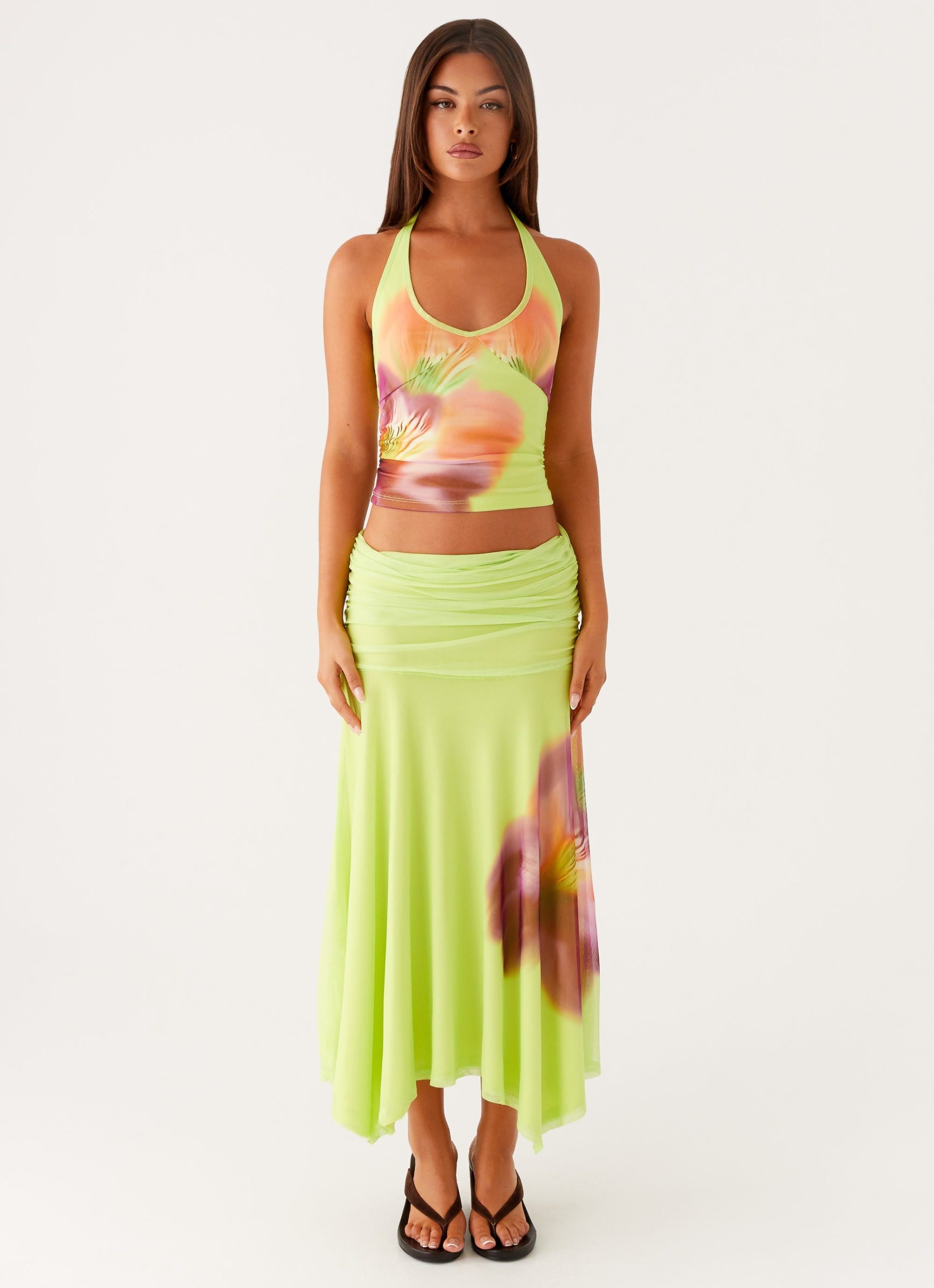 With its ruched side waist and flare hemline. the Liana Ruched Maxi Skirt is your go-to for effortless sophistication. Made from stretch mesh with an exclusive print that will differ per garment.