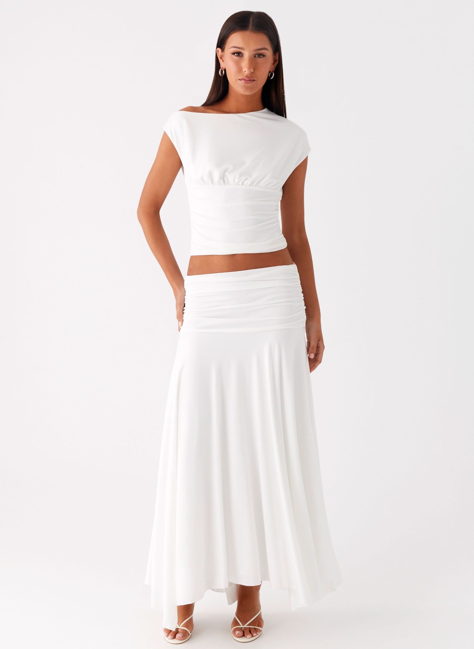 Be the first to review “Liana Ruched Maxi Skirt – White”