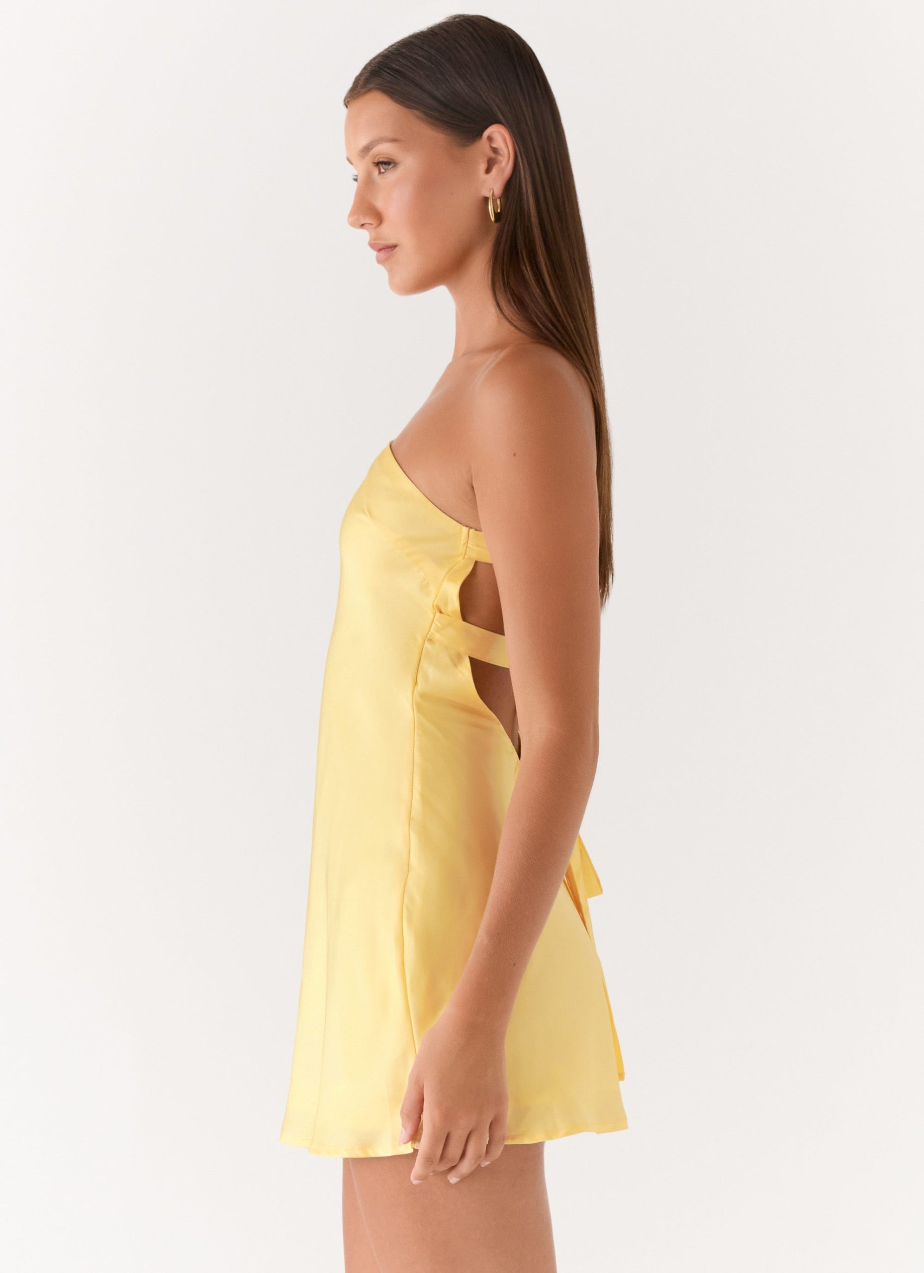 Step into the spotlight with the Lights Out Mini Dress. crafted from luxurious satin that shimmers with every step. The chic one-shoulder neckline and daring open back create a captivating silhouette. making it your go-to choice for glamorous nights out. Elevate your evening look with this stunning statement piece.