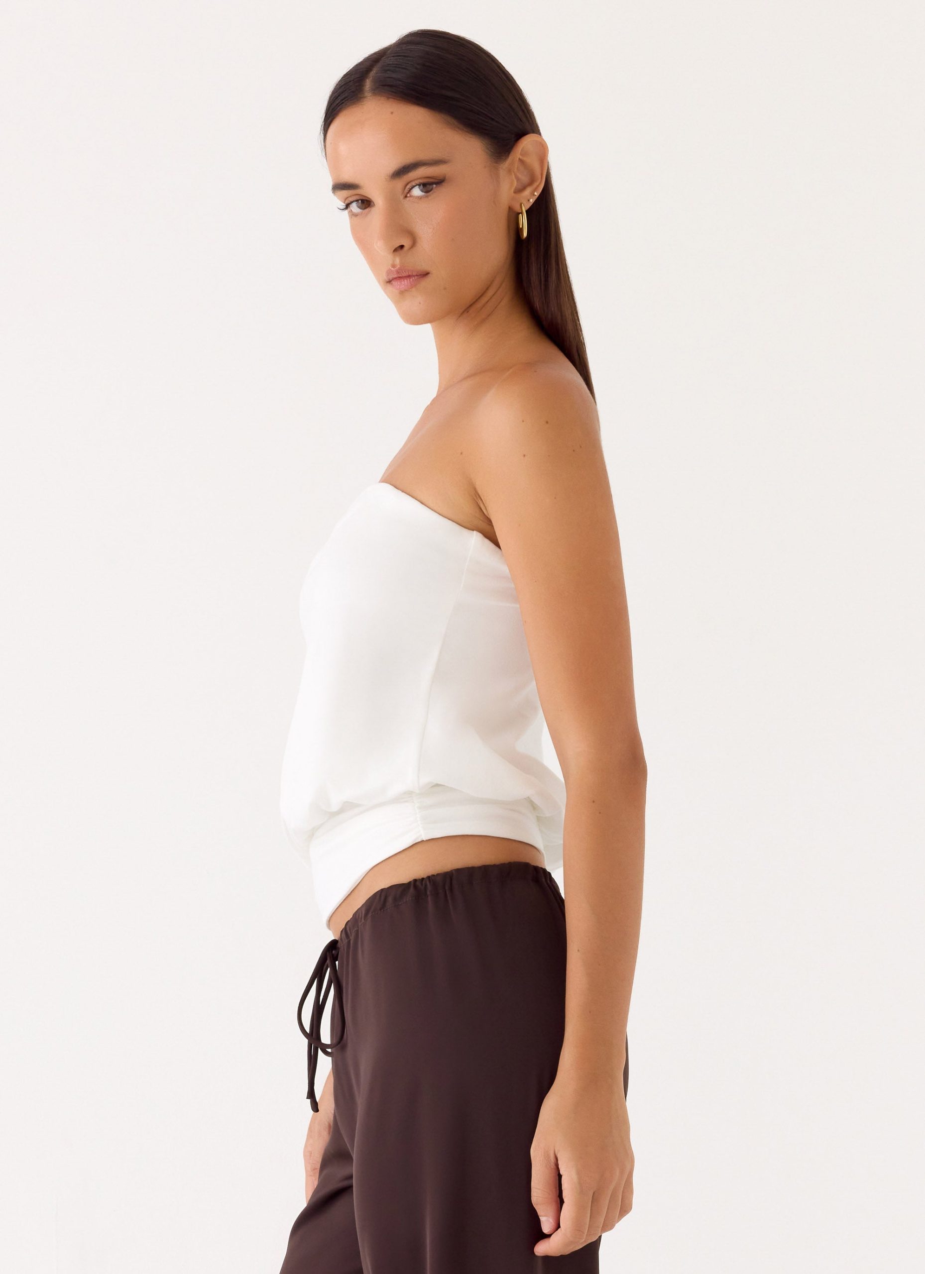 The Livia Strapless Top features a strapless neckline with a softly sculpted blouson bodice. it hugs and drapes in all the right places. A wrap-style thick adjustable tie at the hem defines the silhouette. while full lining keeps the finish smooth from golden hour to after dark.