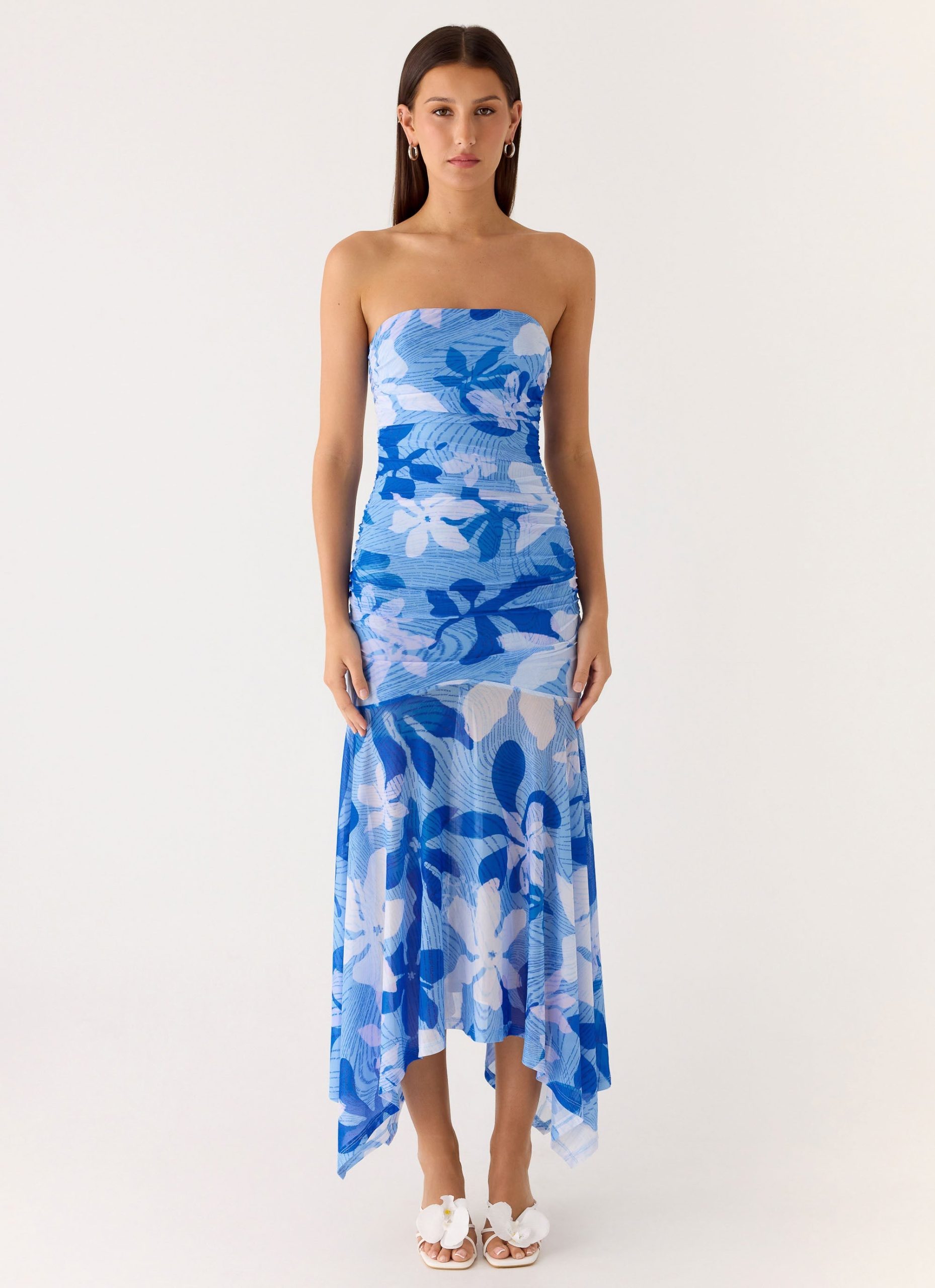 The Lo Siento Midi Dress is made for sunset dinners and after-dark wandering. Designed in a strapless silhouette with a gathered bodice and mesh overlay. it skims the body with a soft stretch finish and flows with every step. Fully lined with jersey for comfort. it features our exclusive print and a secure fit with gripper tape and invisible closure detailing.